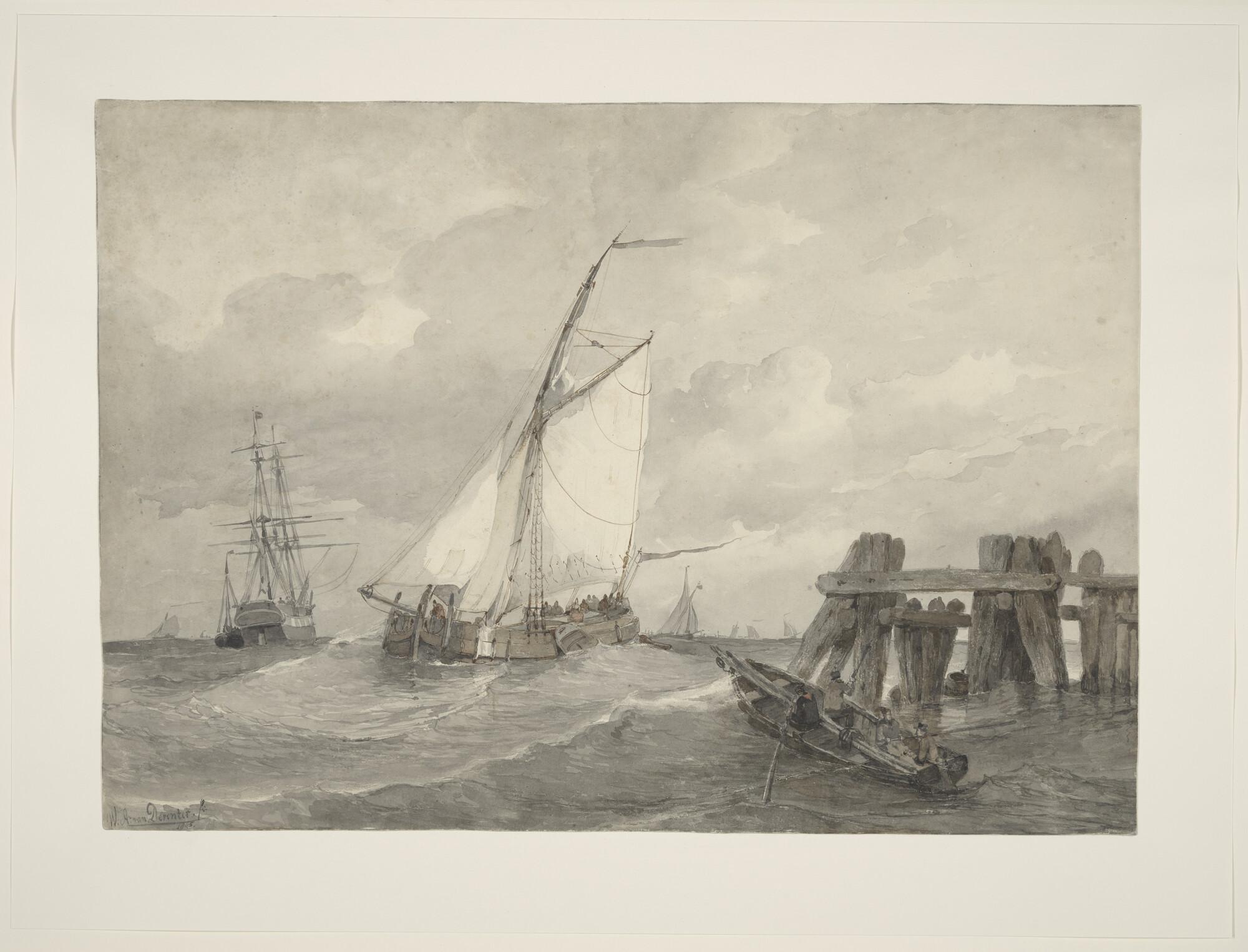 Een praam voor een havenmond