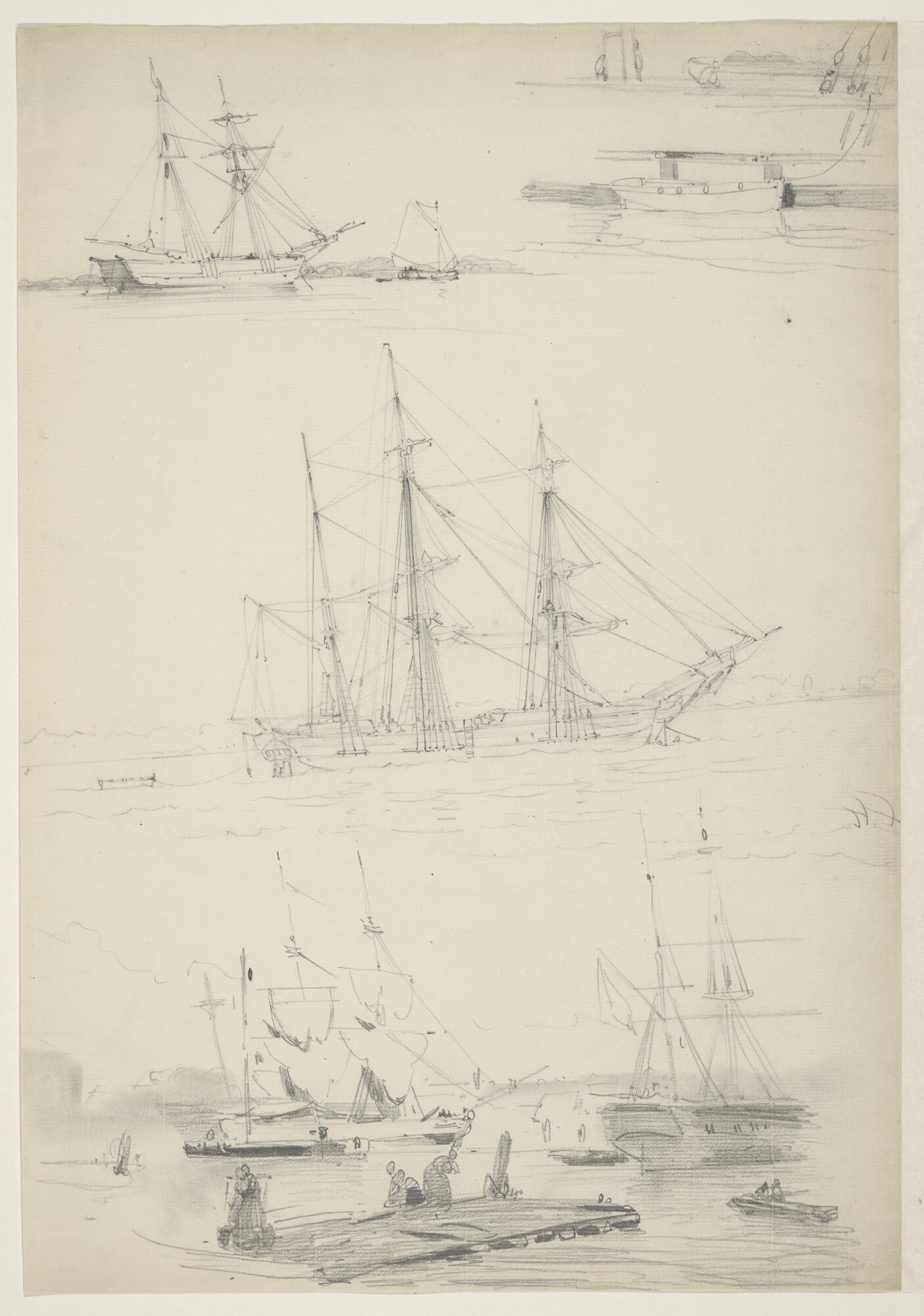 Studieblad met diverse schepen