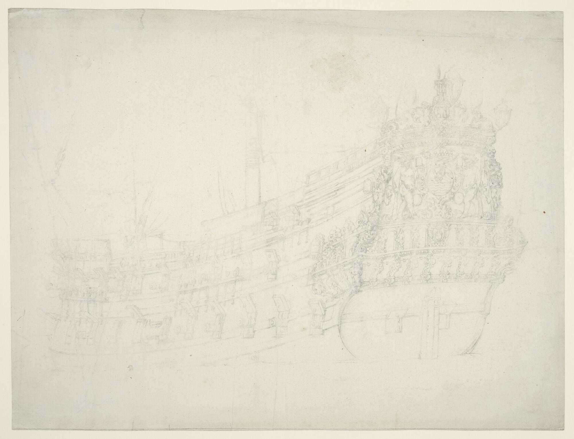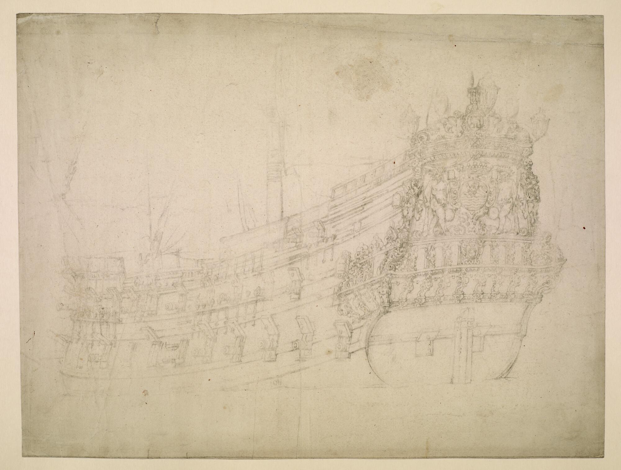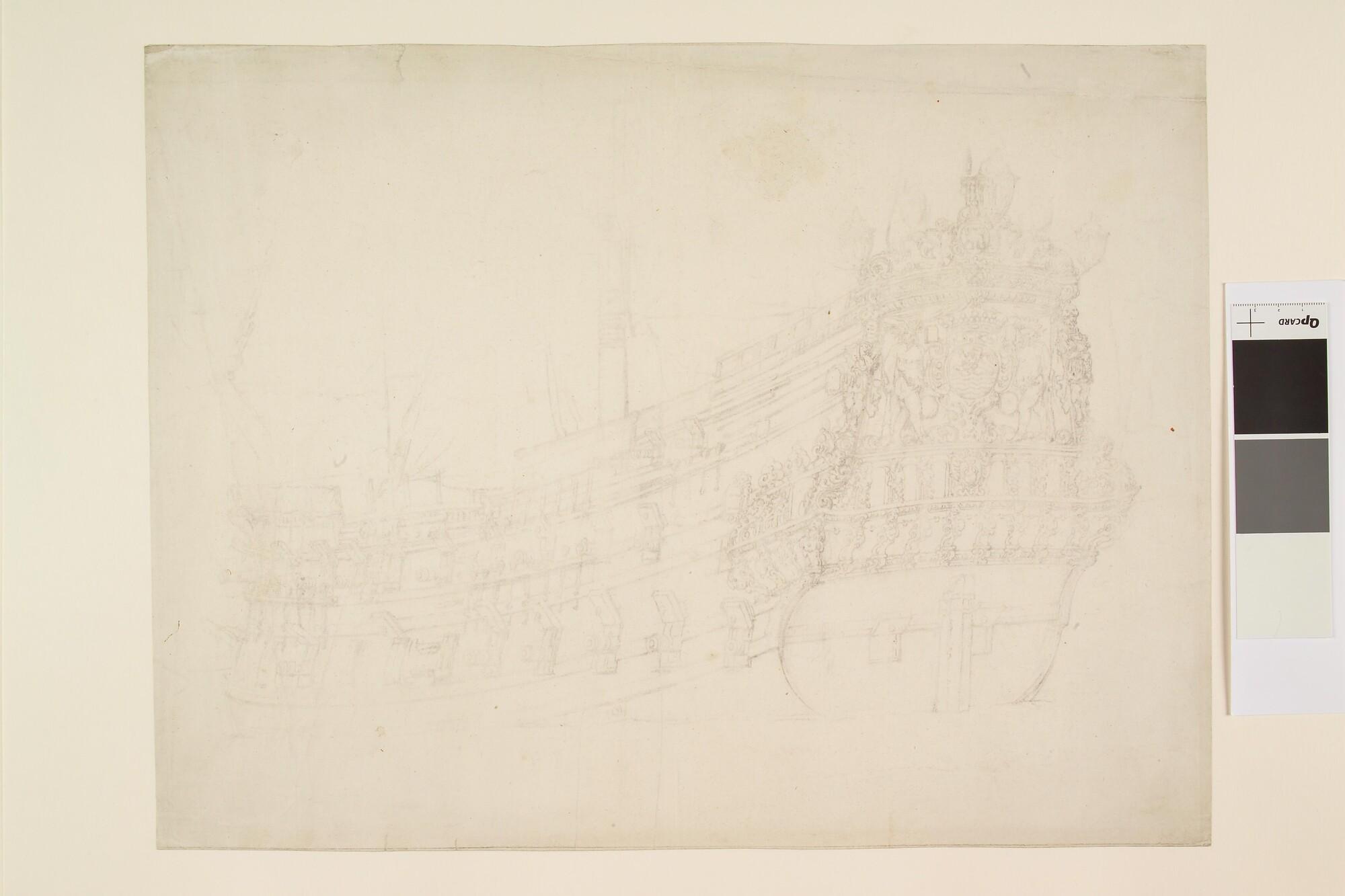 Het oorlogsschip Zeelandia, gezien van bakboord-achter.