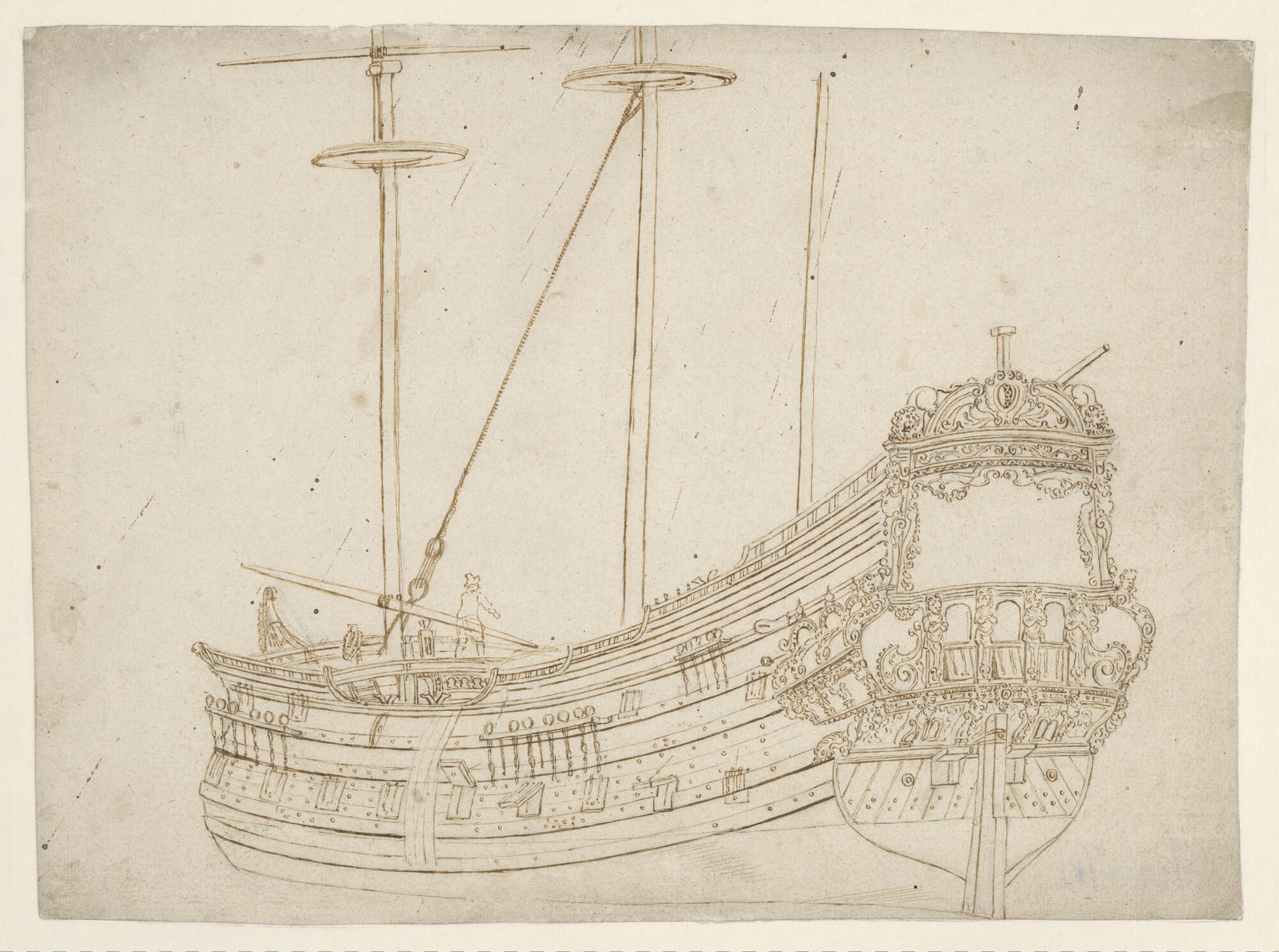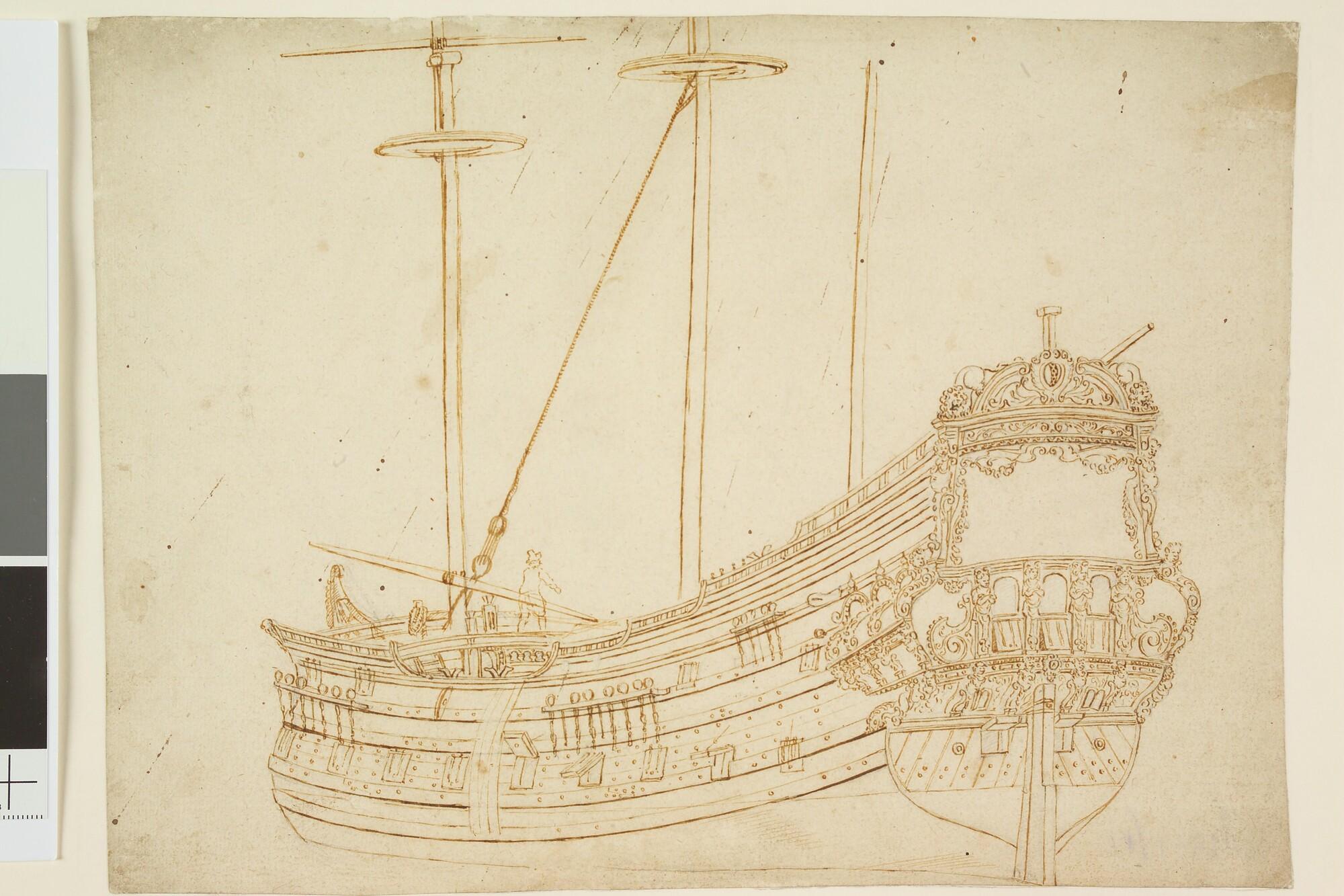 Een oorlogsschip van de Admiraliteit van Amsterdam tijdens de afbouw