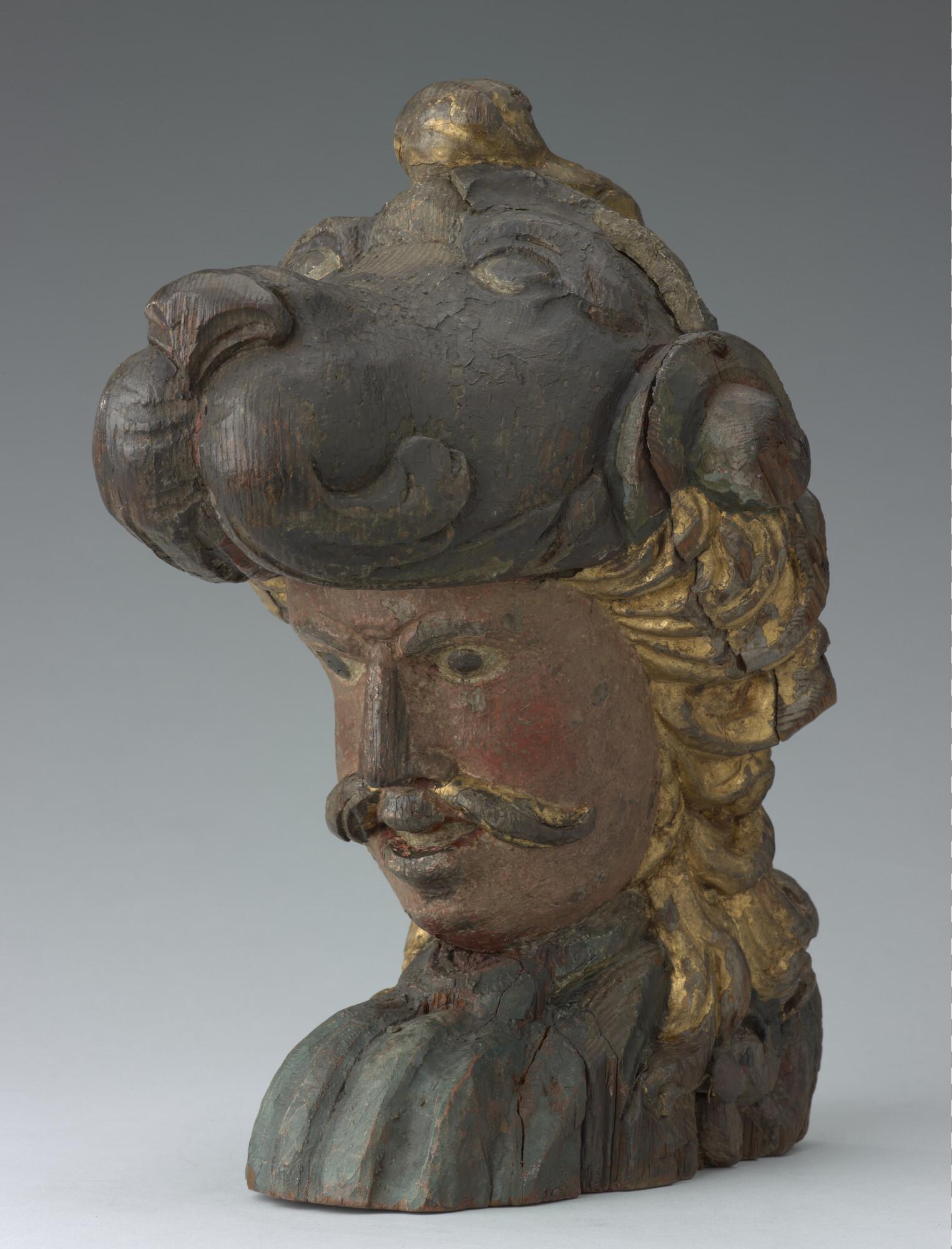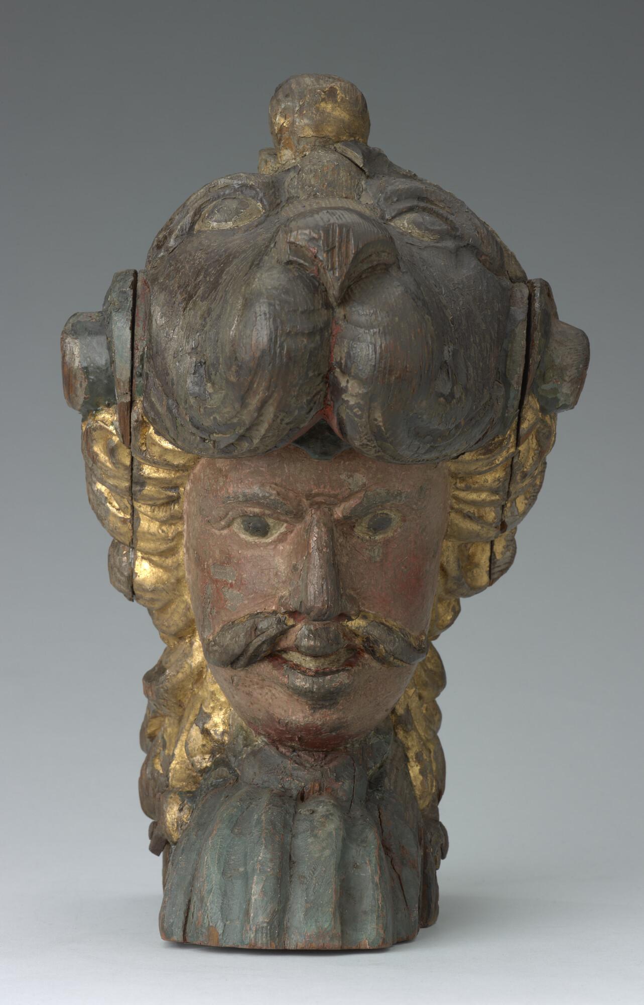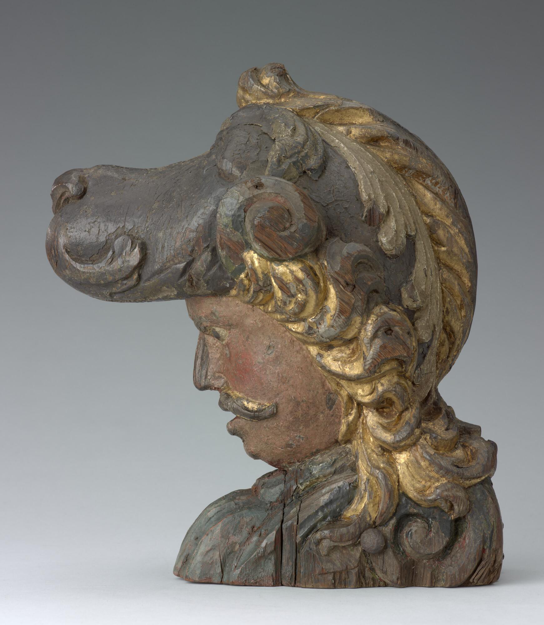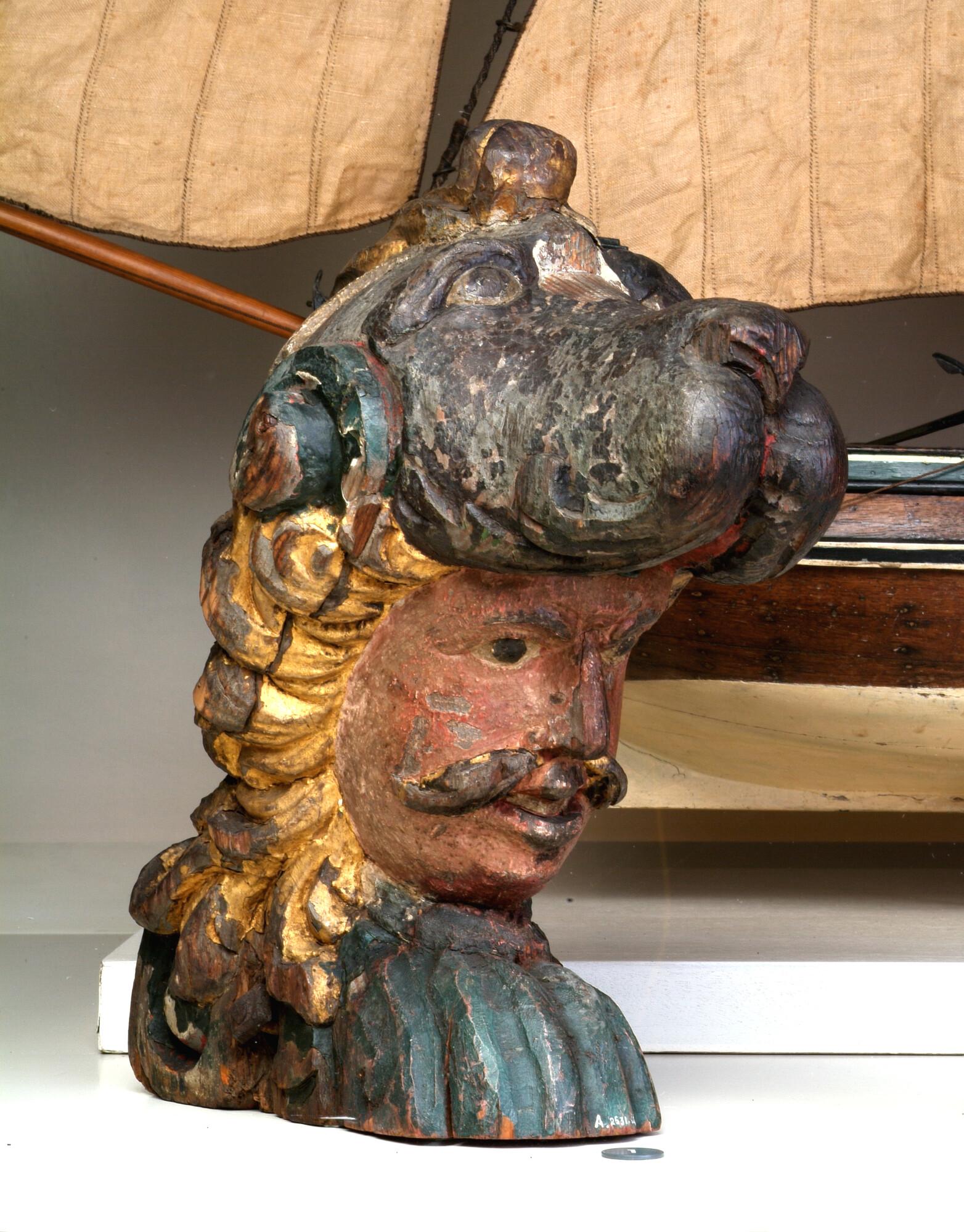 Roerkop, voorstellend een mannenhoofd met een helm