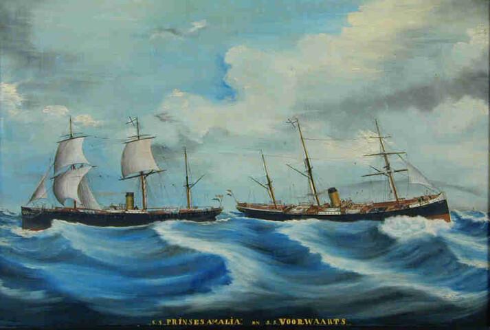 De passagiersschepen ss. Prinses Amalia en het ss. Voorwaarts van de Stoomvaart-Maatschappij "Nederland"