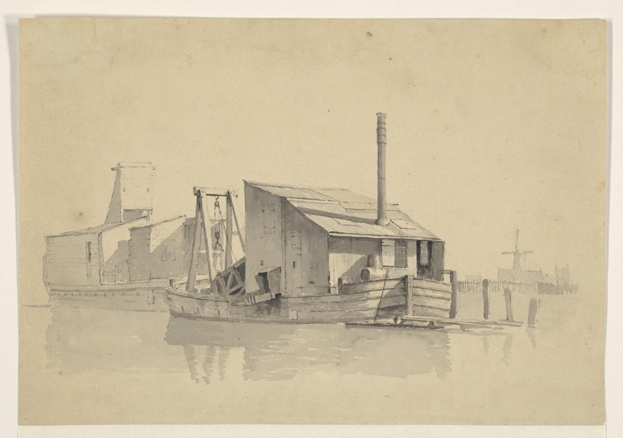 Twee baggerschepen.