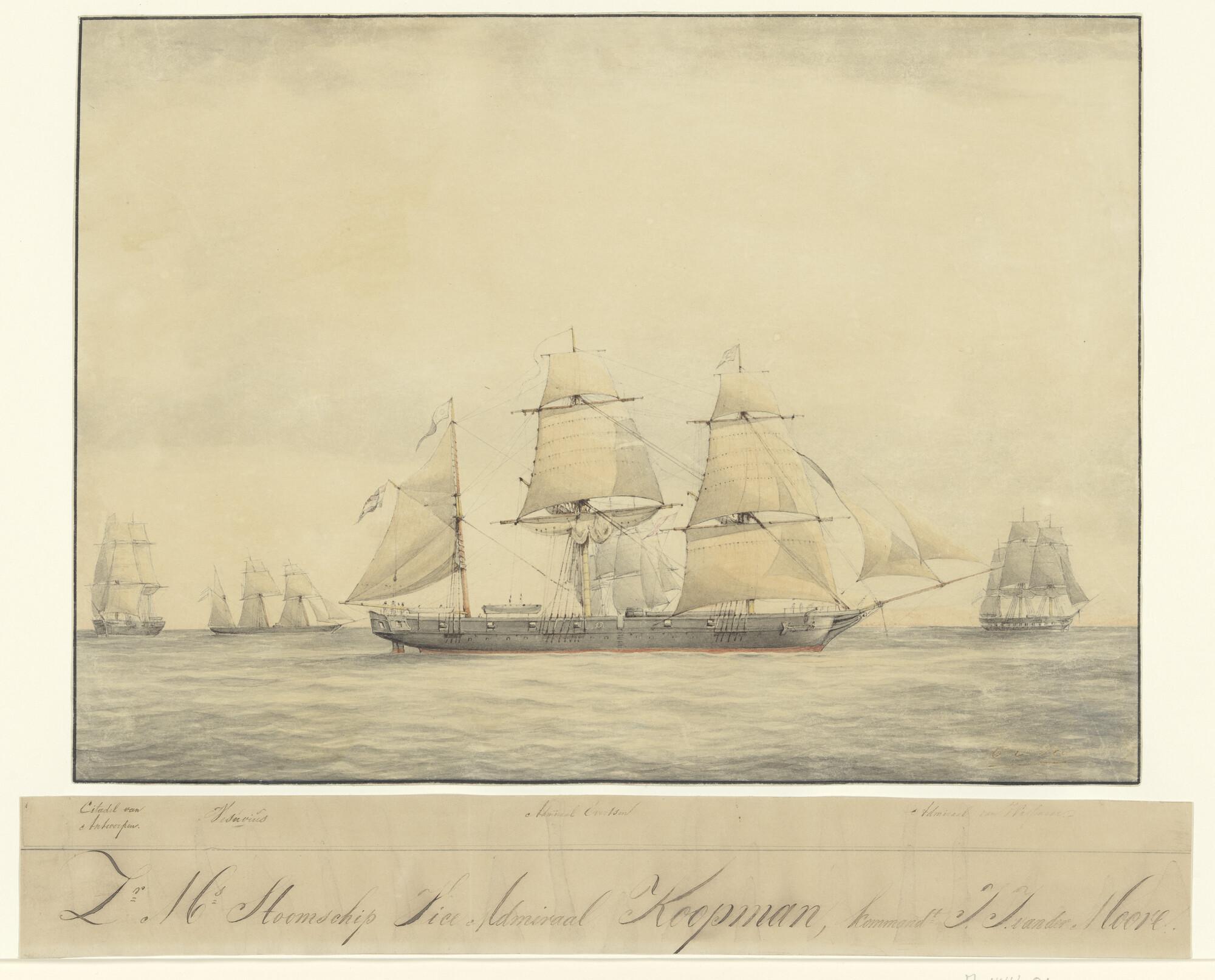 Het schroefstoomschip 2de klasse Zr.Ms. "Vice Admiraal Koopman" en drie andere schepen