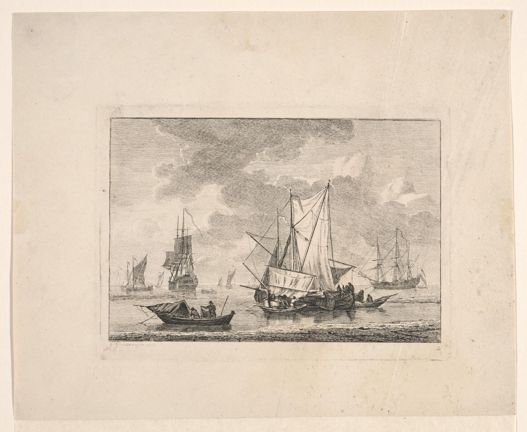 Uit de serie van zeegezichten met diverse soorten vaartuigen: nummer 2
