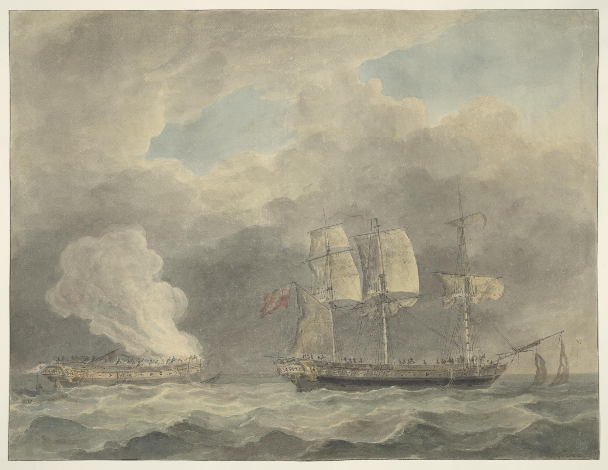 Einde van het gevecht tussen de "Gelderland" en het Engelse fregat "Virginie" in 1808