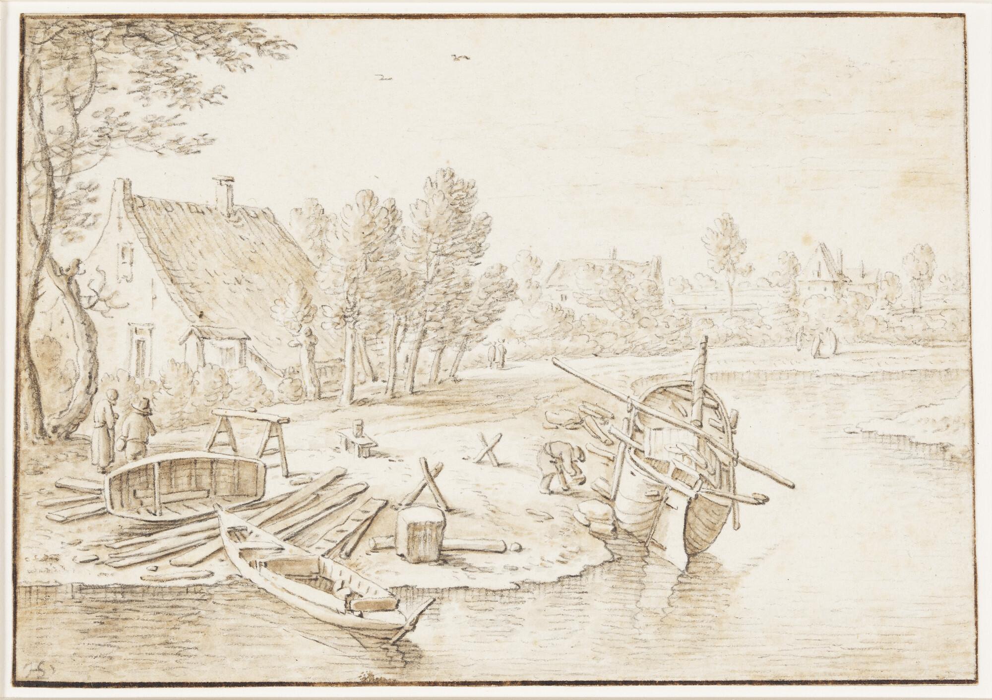 Scheepswerfje bij de Plompe Toren, buiten de Utrechtse stadsmuur