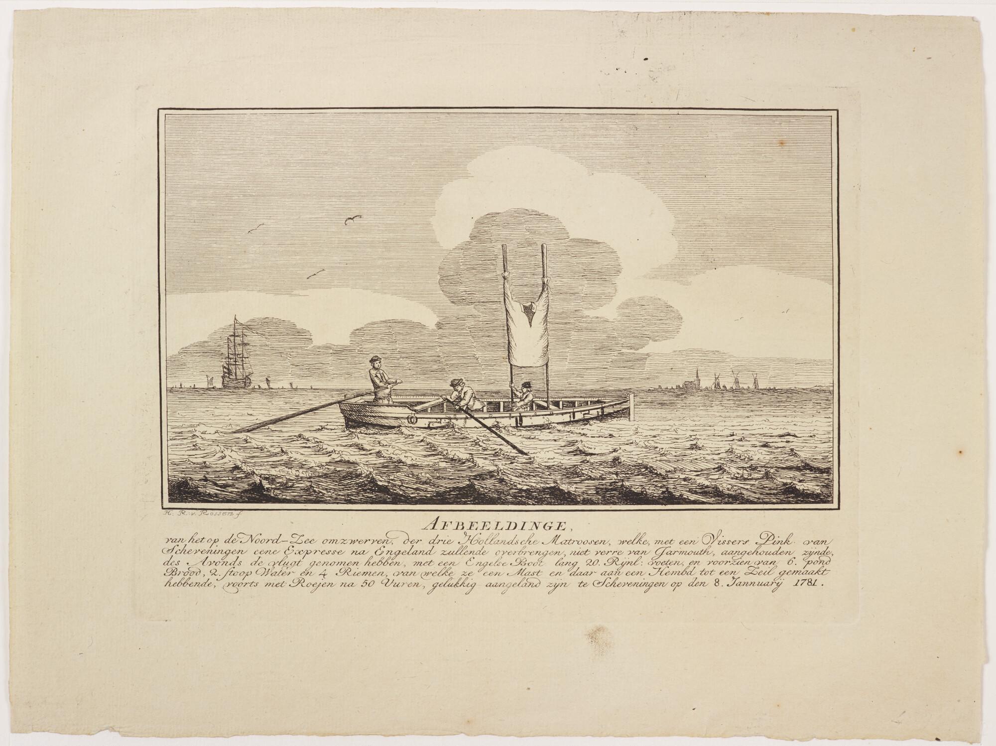 Het rondzwerven op de Noordzee op de rede van Scheveningen van drie matrozen, januari 1781.