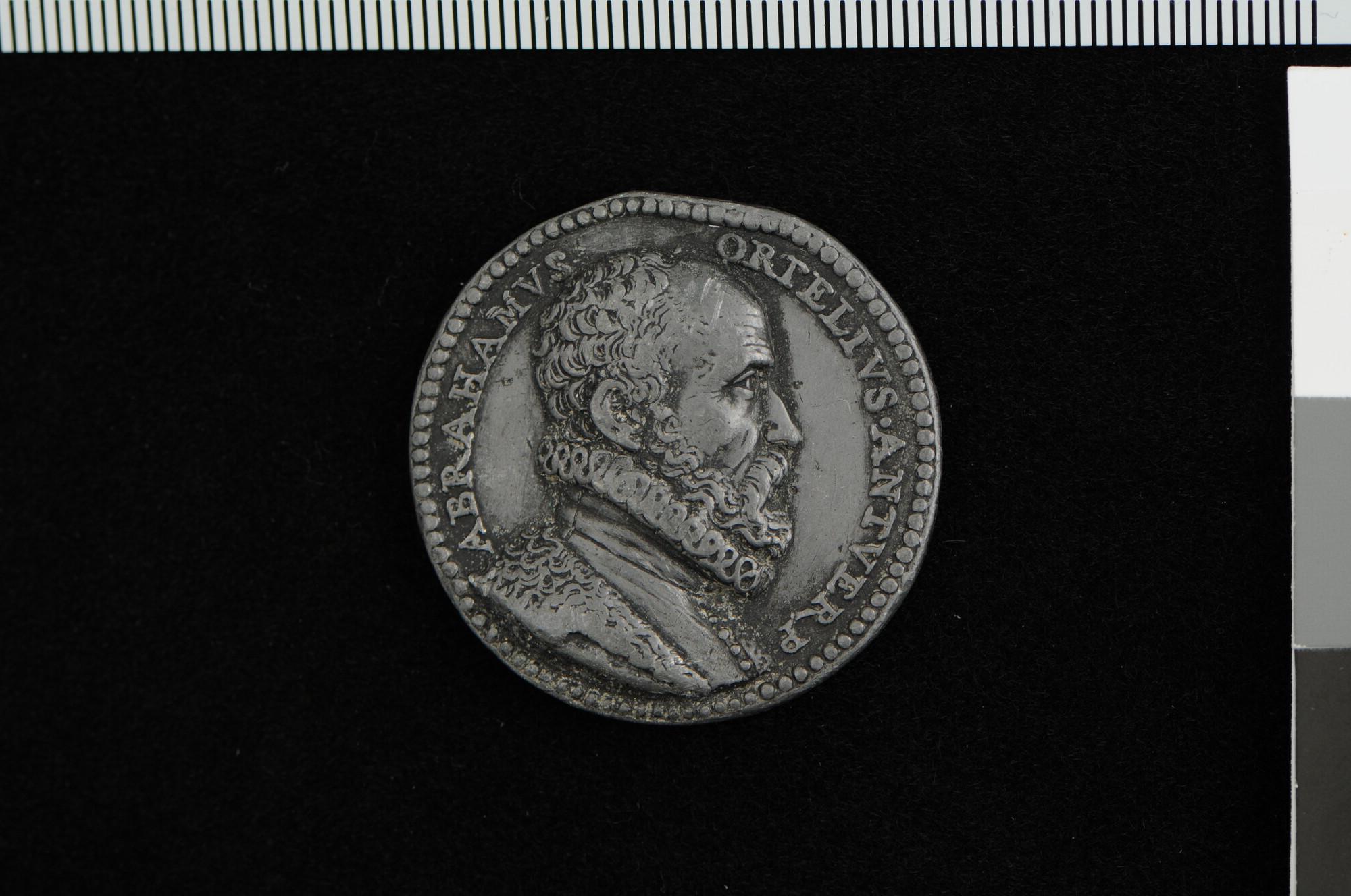Penning met de beeltenis van geograaf Abraham Ortelius, 1578.