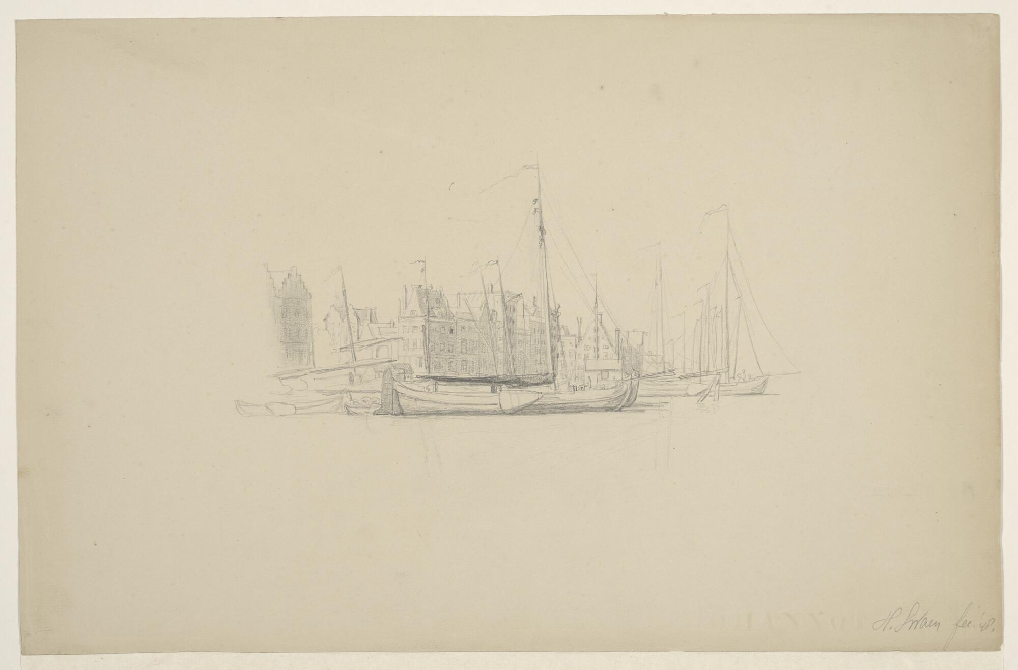 Tjalken afgemeerd aan de kade.
