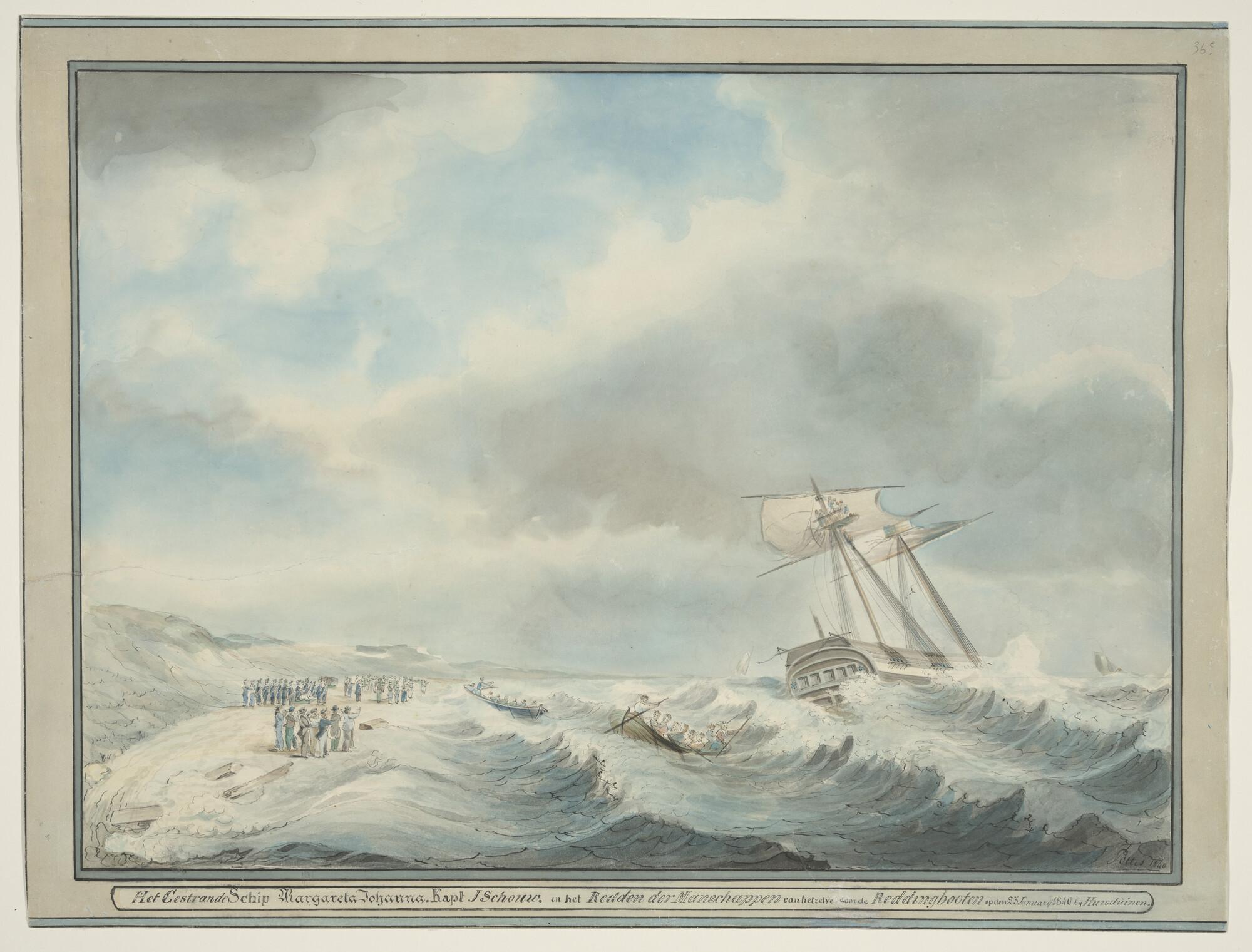 Stranding van de "Margareta Johanna" bij Huisduinen op 23 Januari 1840.
