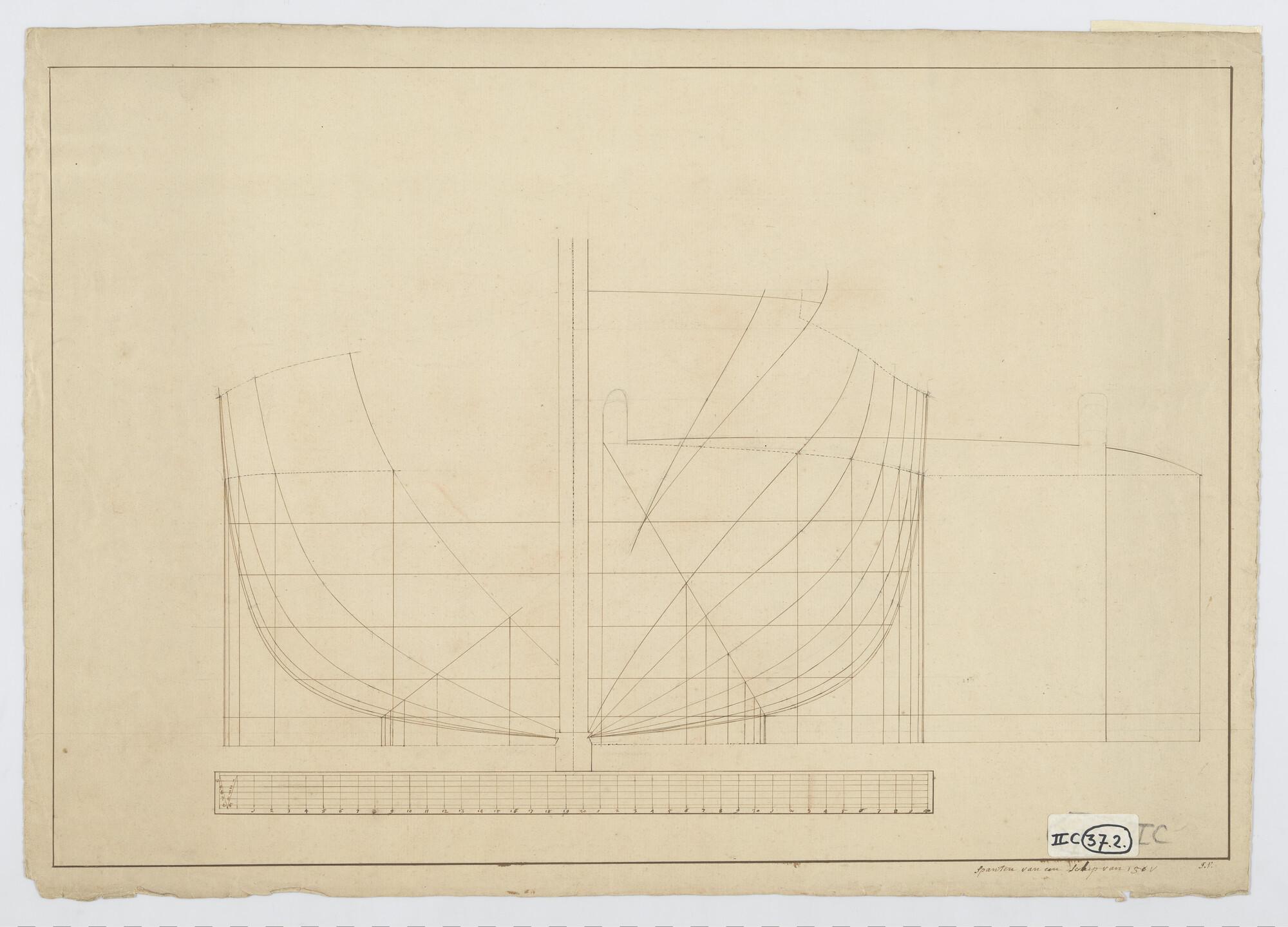 Voor- en achteraanzicht van een scheepskameel van 150 voet.