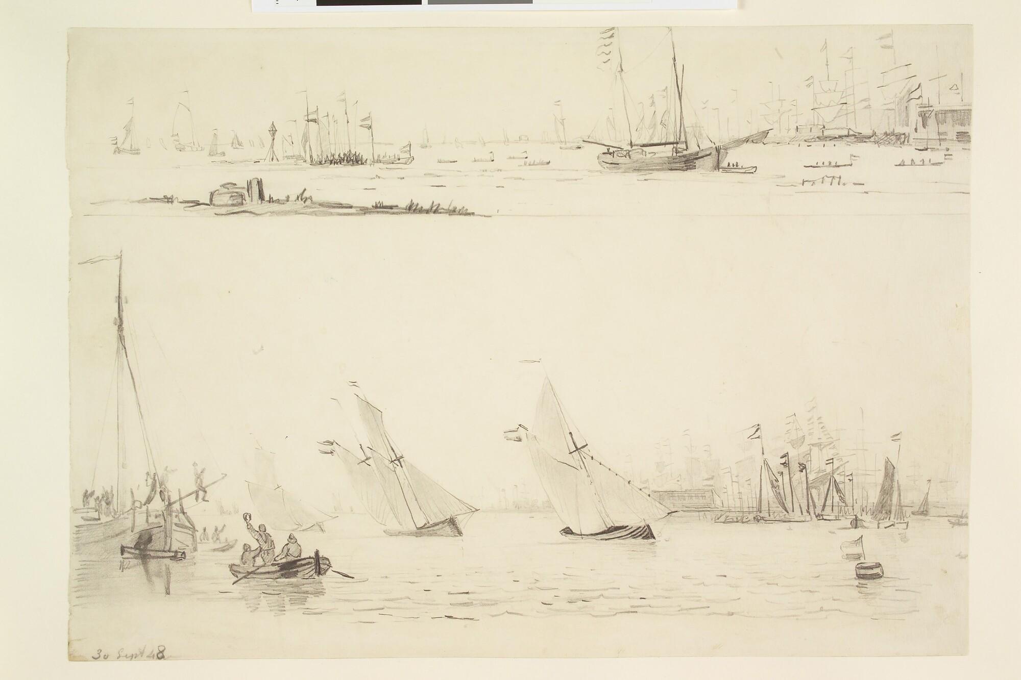 Zeilwedstrijd op het IJ, 30 september 1848, twee afbeeldingen boven elkaar