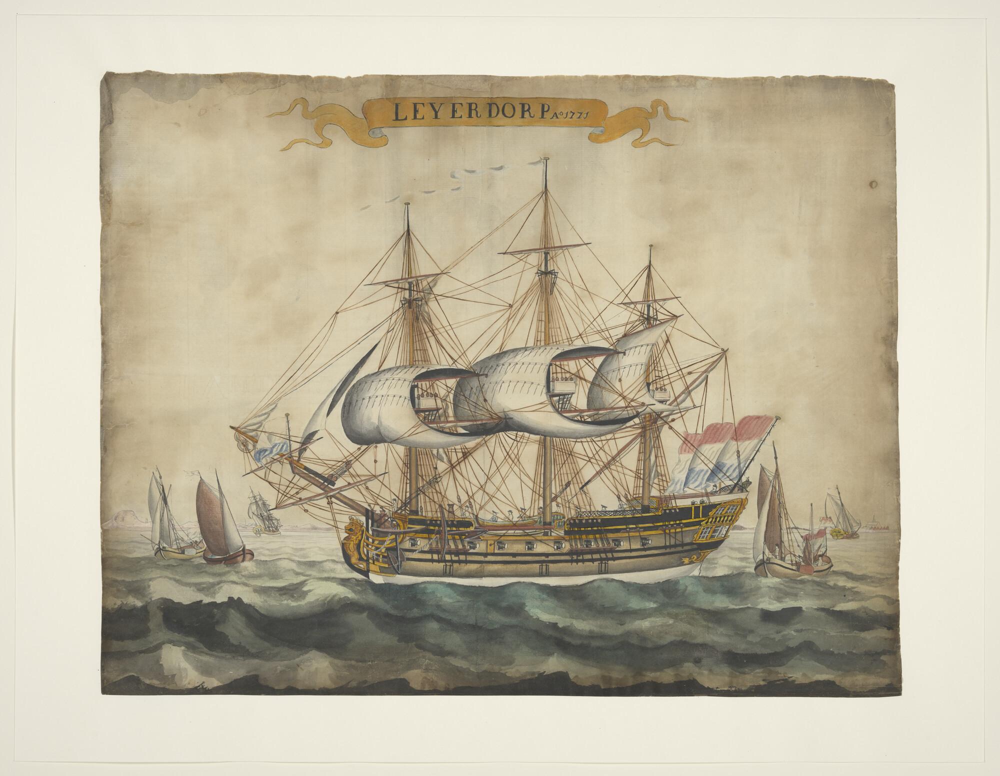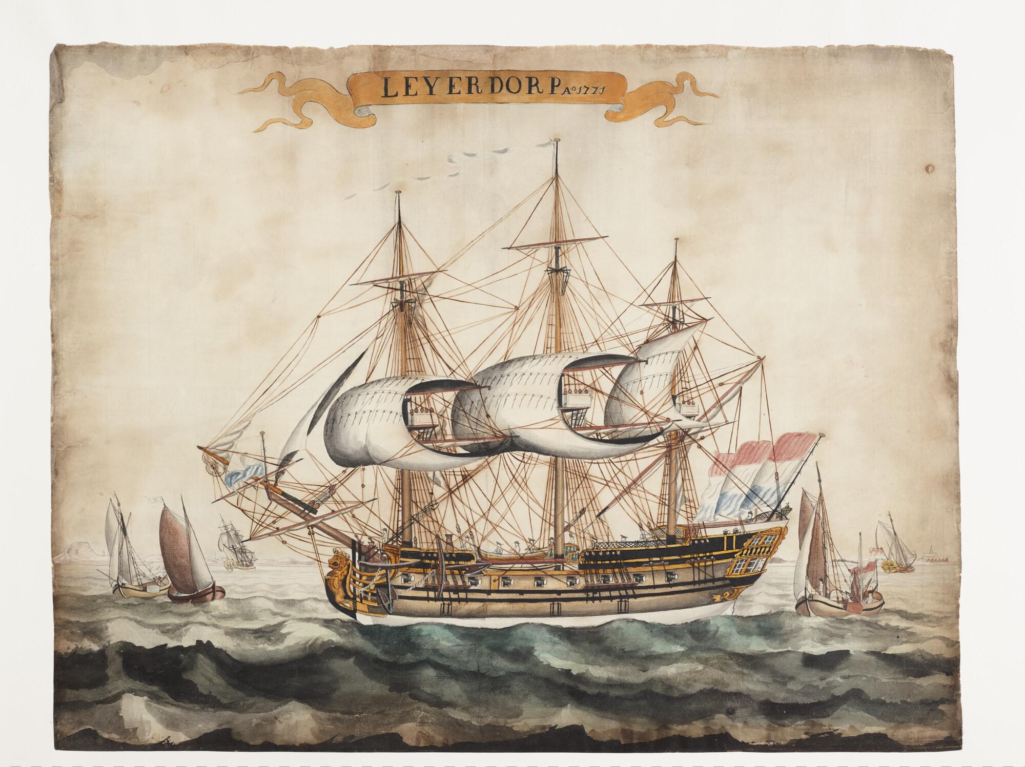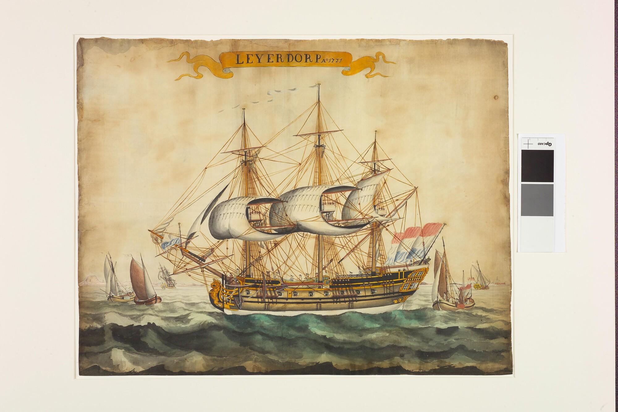 Het retourschip 'Leyderdorp' op de rede van Texel
