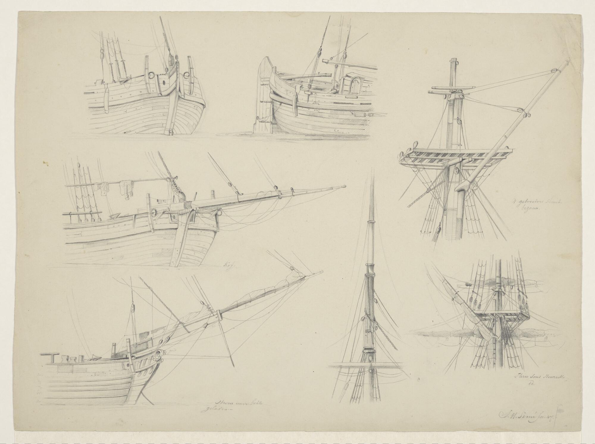 Een binnenschip; het Engelse schip 'Three Sons'; tuigonderdelen