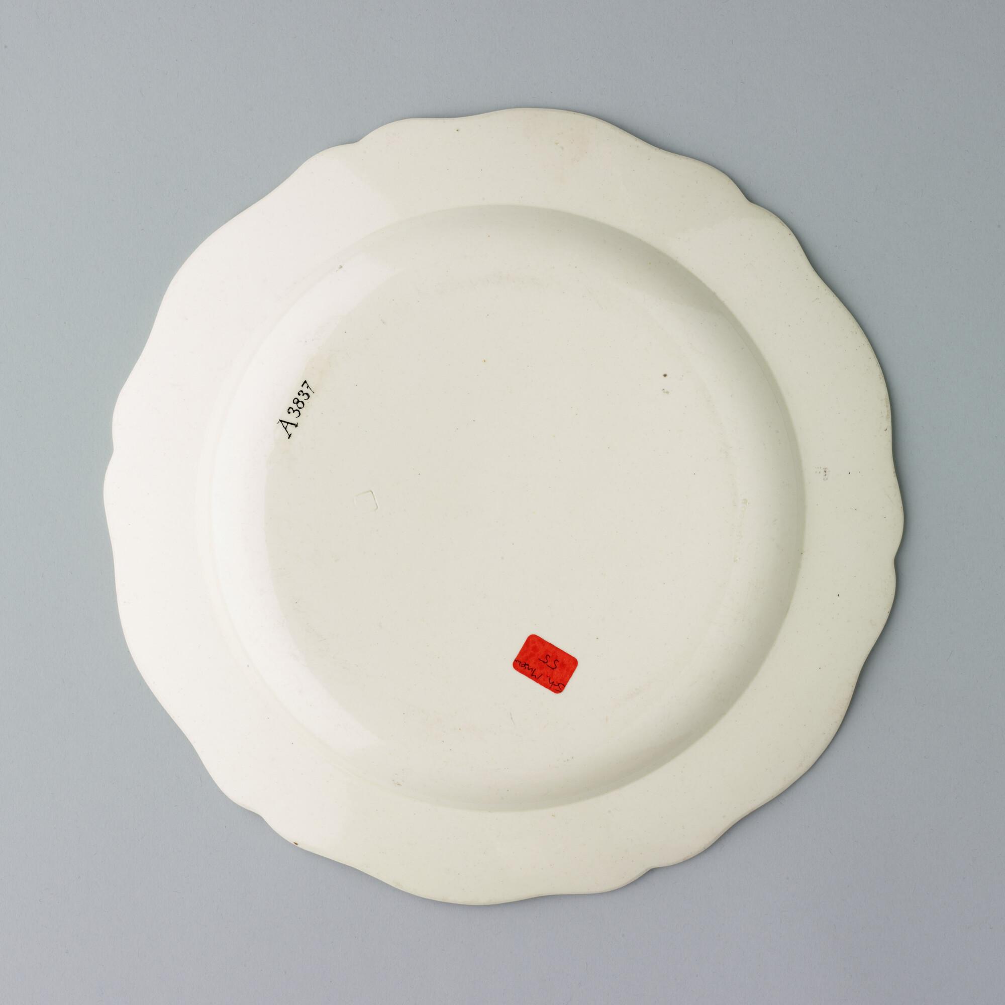 Bord van Engels aardewerk met voorstelling van een hoeker