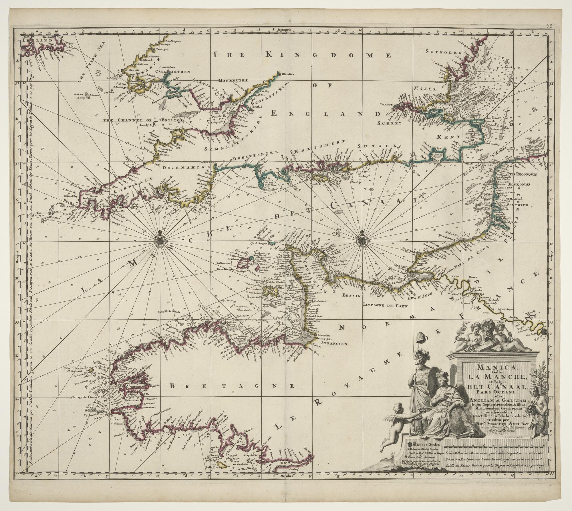 Met de hand gekleurde paskaart van Het Kanaal