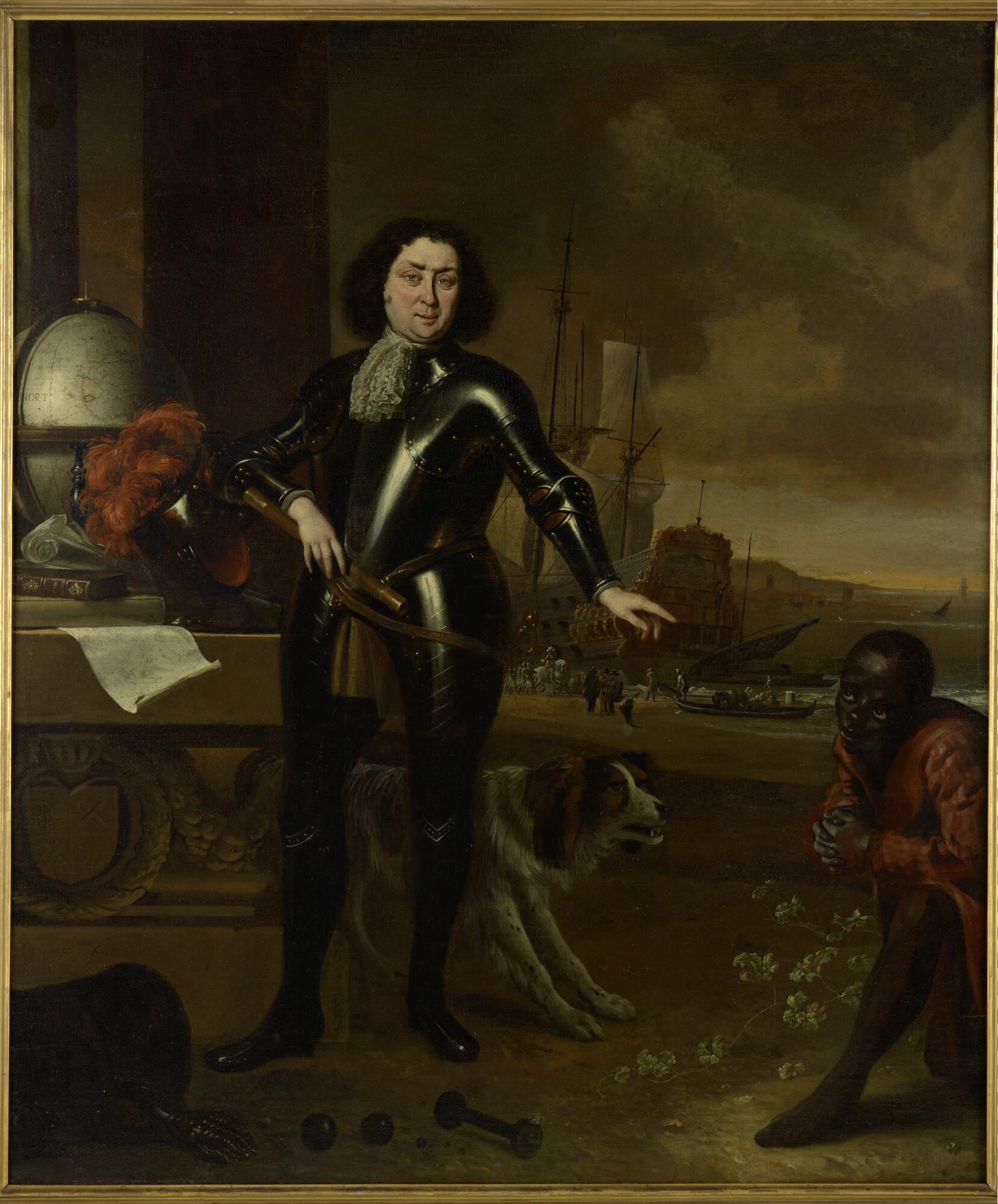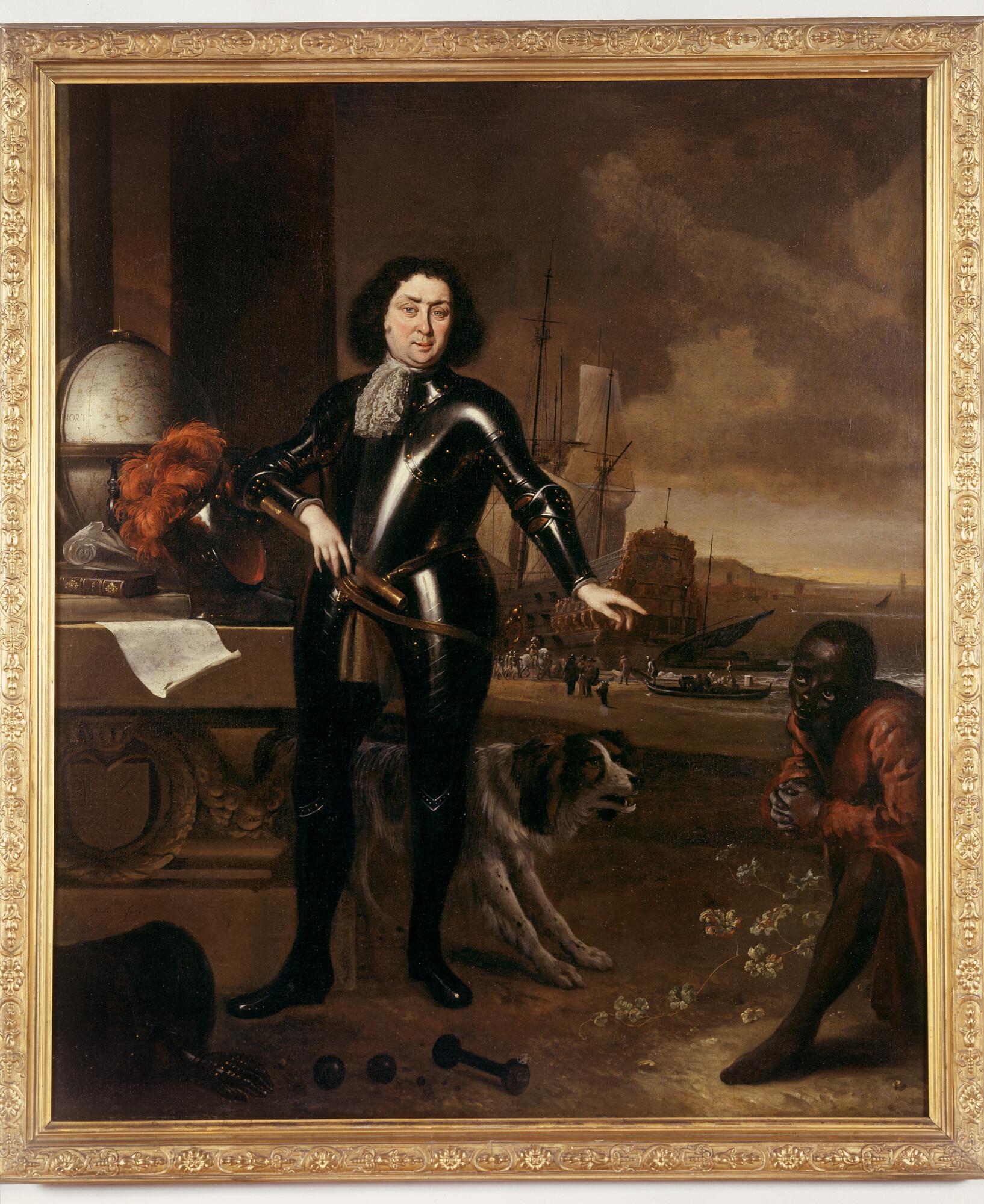 Portret van vice-admiraal Gillis Schey (1644-1703). Schey draagt een harnas en houdt in zijn rechterhand een commandostaf vast. Hij maakte carrière bij de zeesoldaten – mariniers – en vocht in veel zeeslagen. Toen Peter de Grote Amsterdam bezocht, organiseerde Schey namens de admiraliteit een spiegelgevecht. De Russische tsaar bood hem vervolgens een baan in de ...