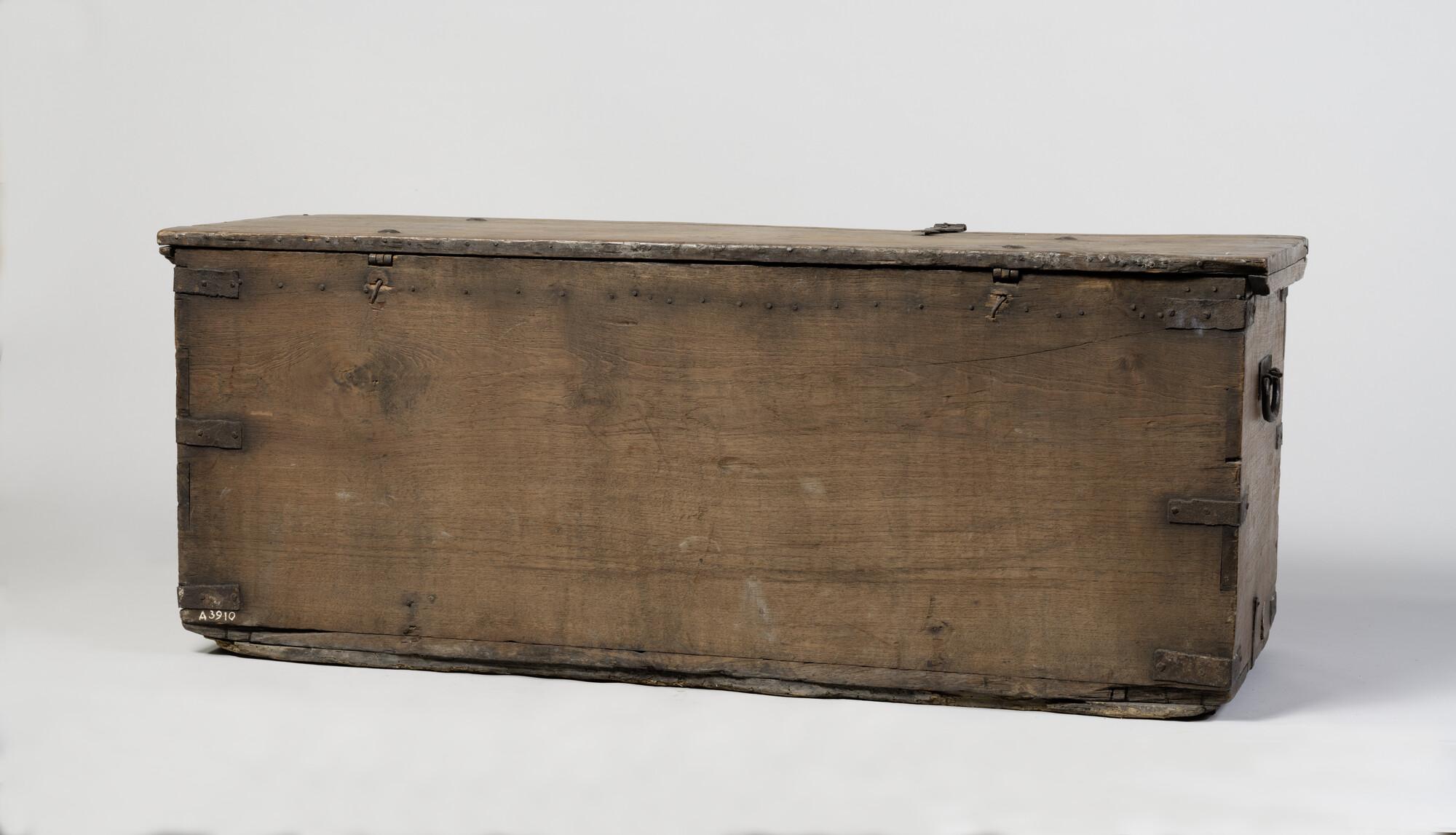 Scheepskist van teakhout gemerkt met VOC 1716. Voorzien van ijzer beslag.