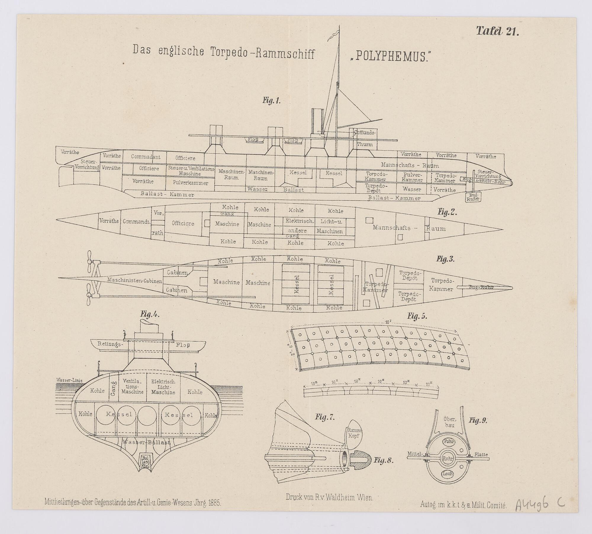 Algemeen plan van het Engels torpedoramschip "Polyphemus".
