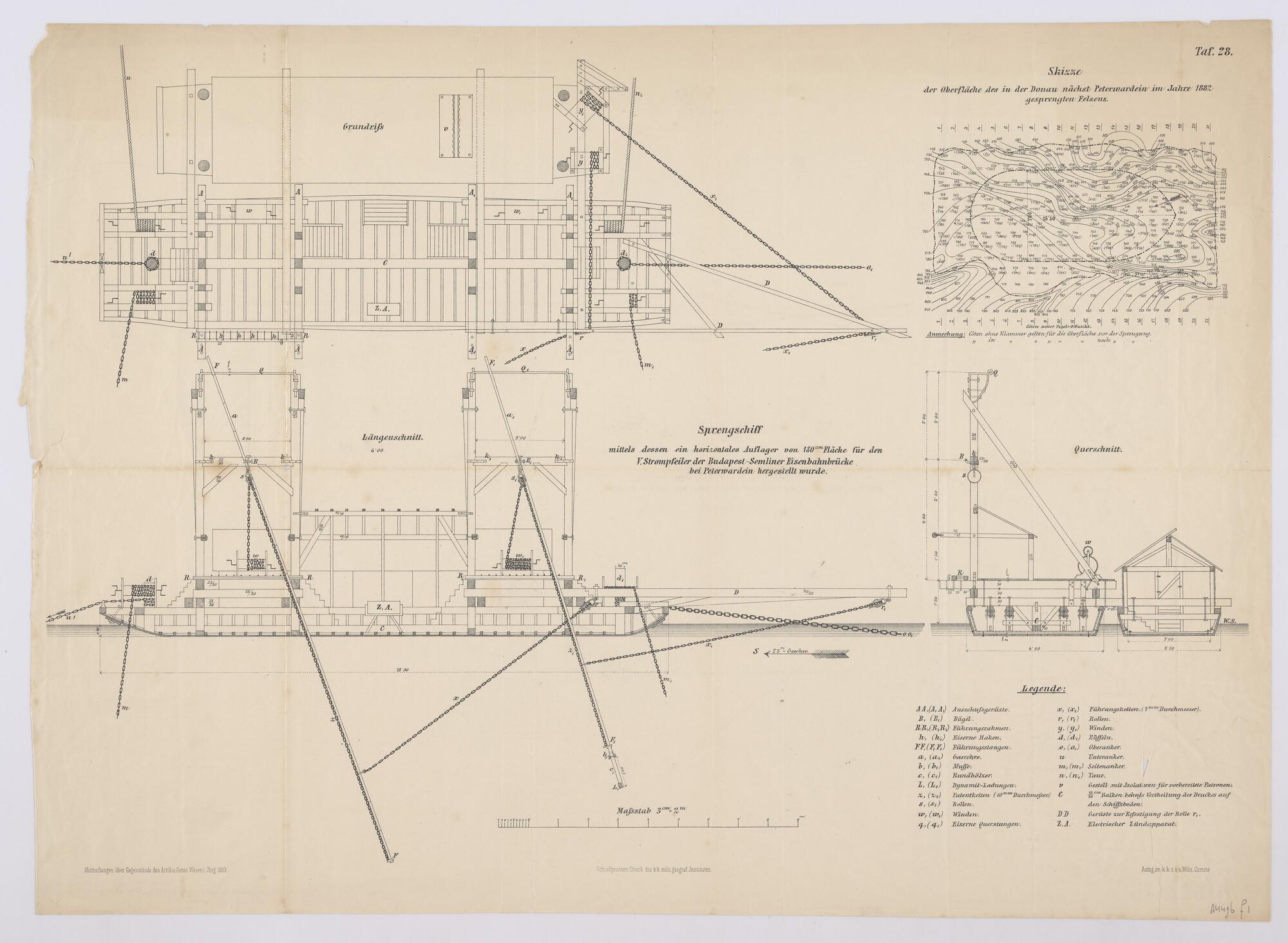 Constructietekening van werkvaartuigen voor het aanbrengen van springstoffen.