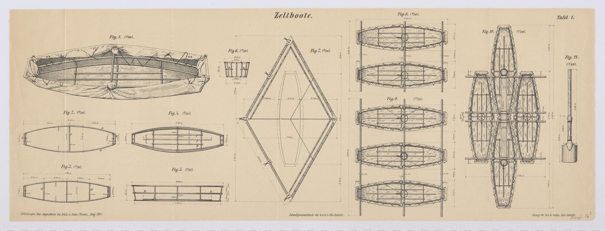 Constructietekening van drijflichamen voor pontonbrugbouw.