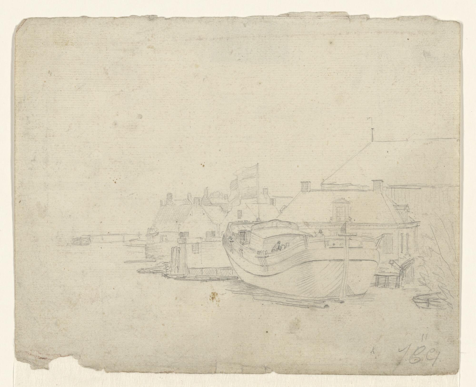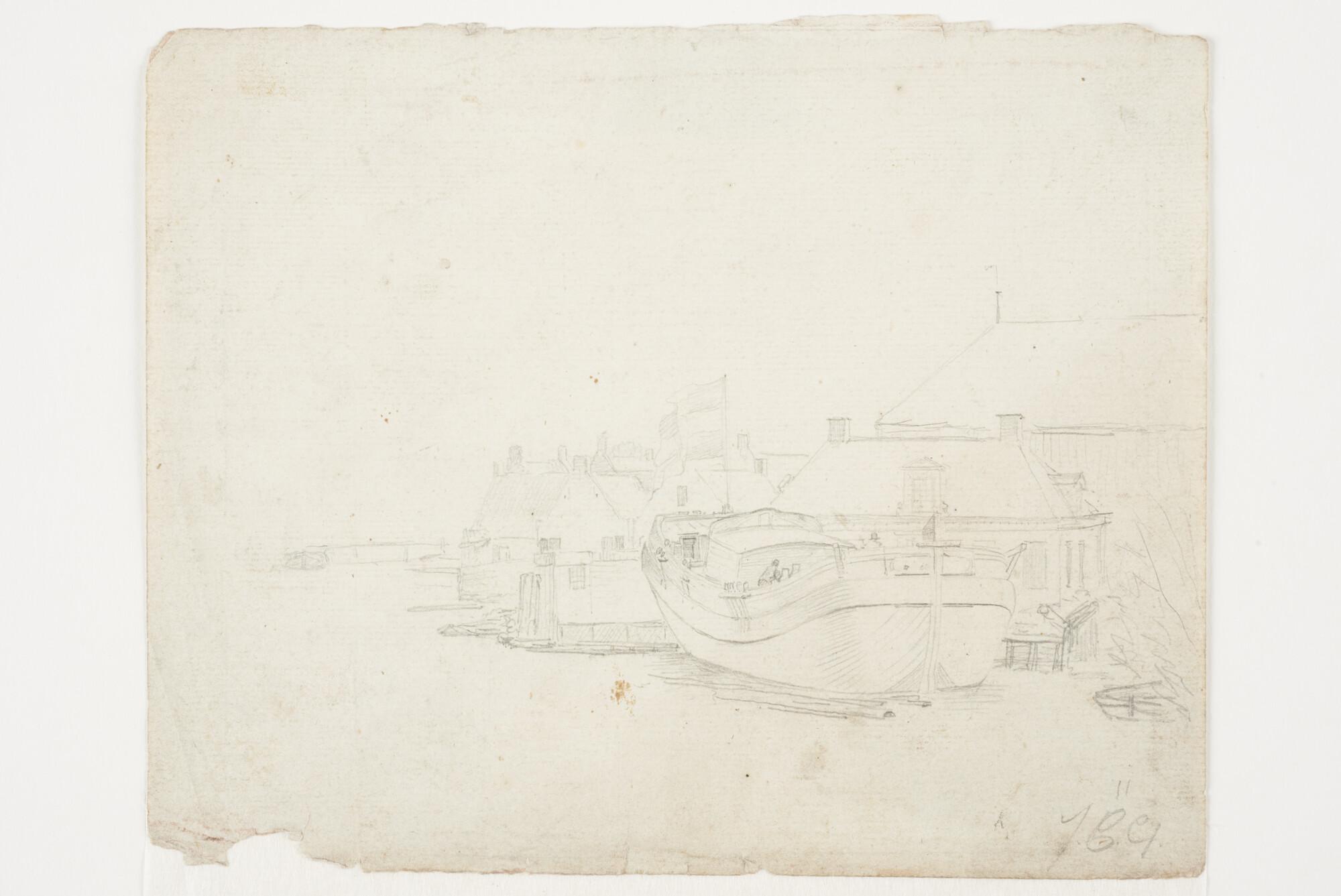 Een scheepswerf met bijna voltooide kof