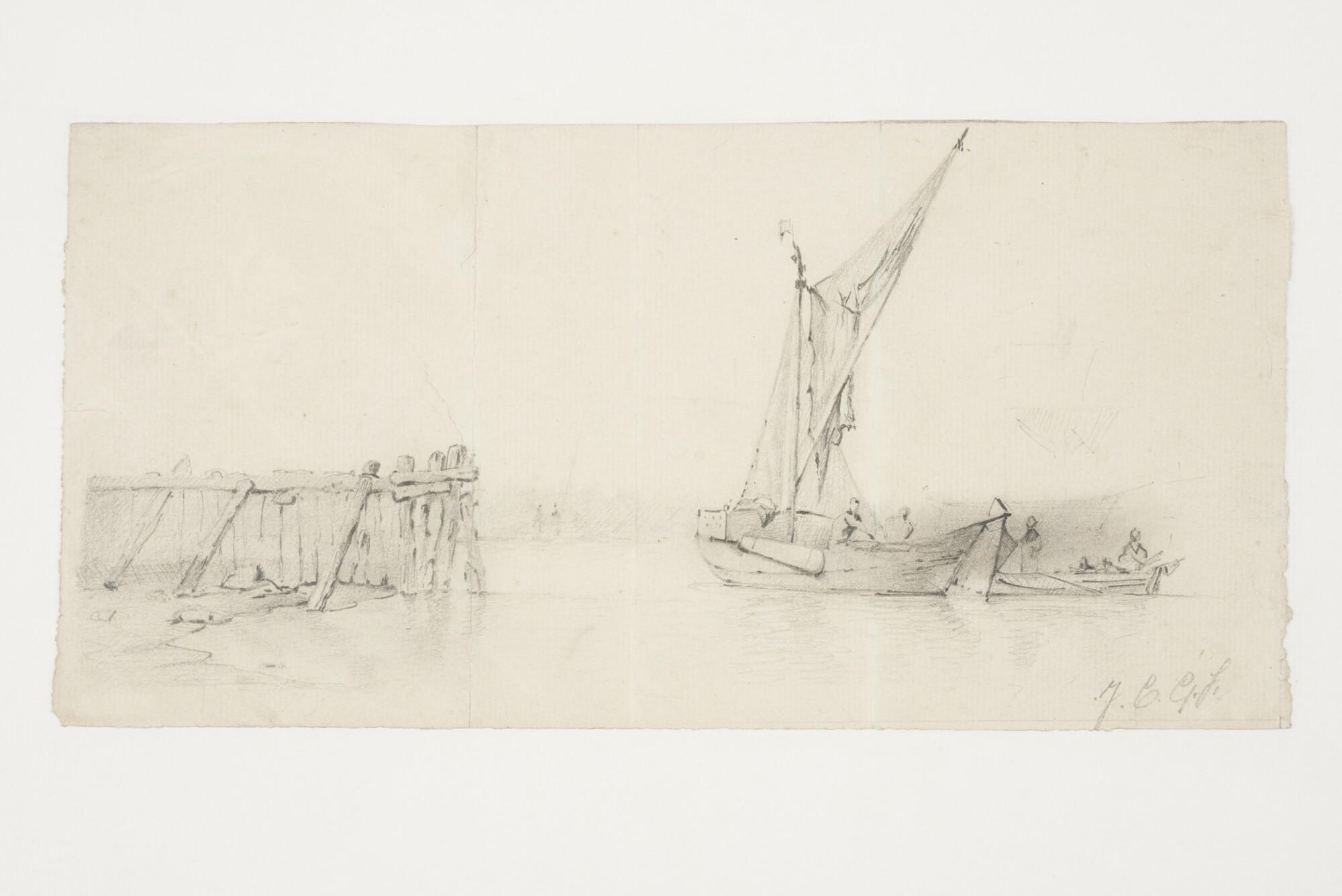 Een visaak nabij een schoeiing.