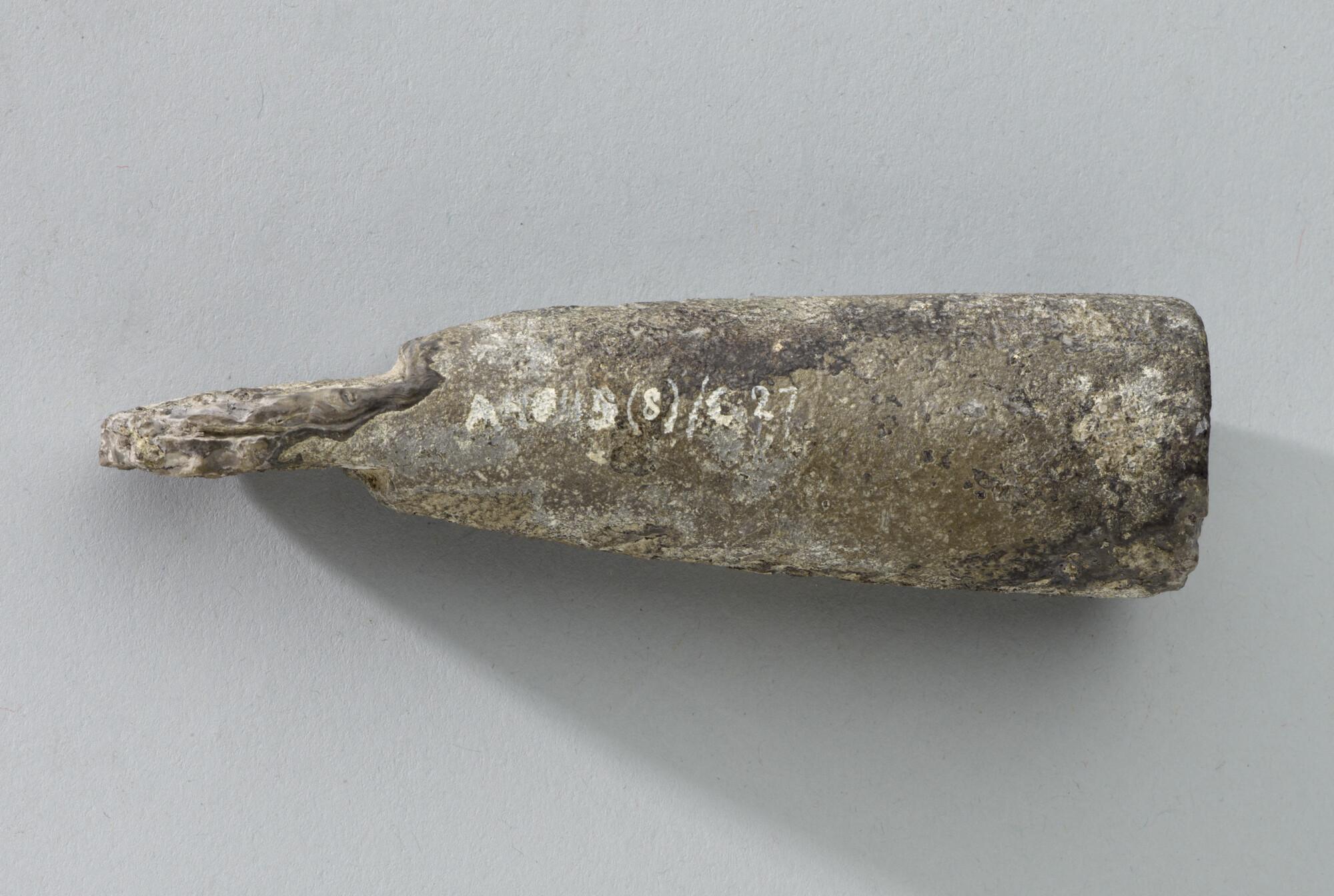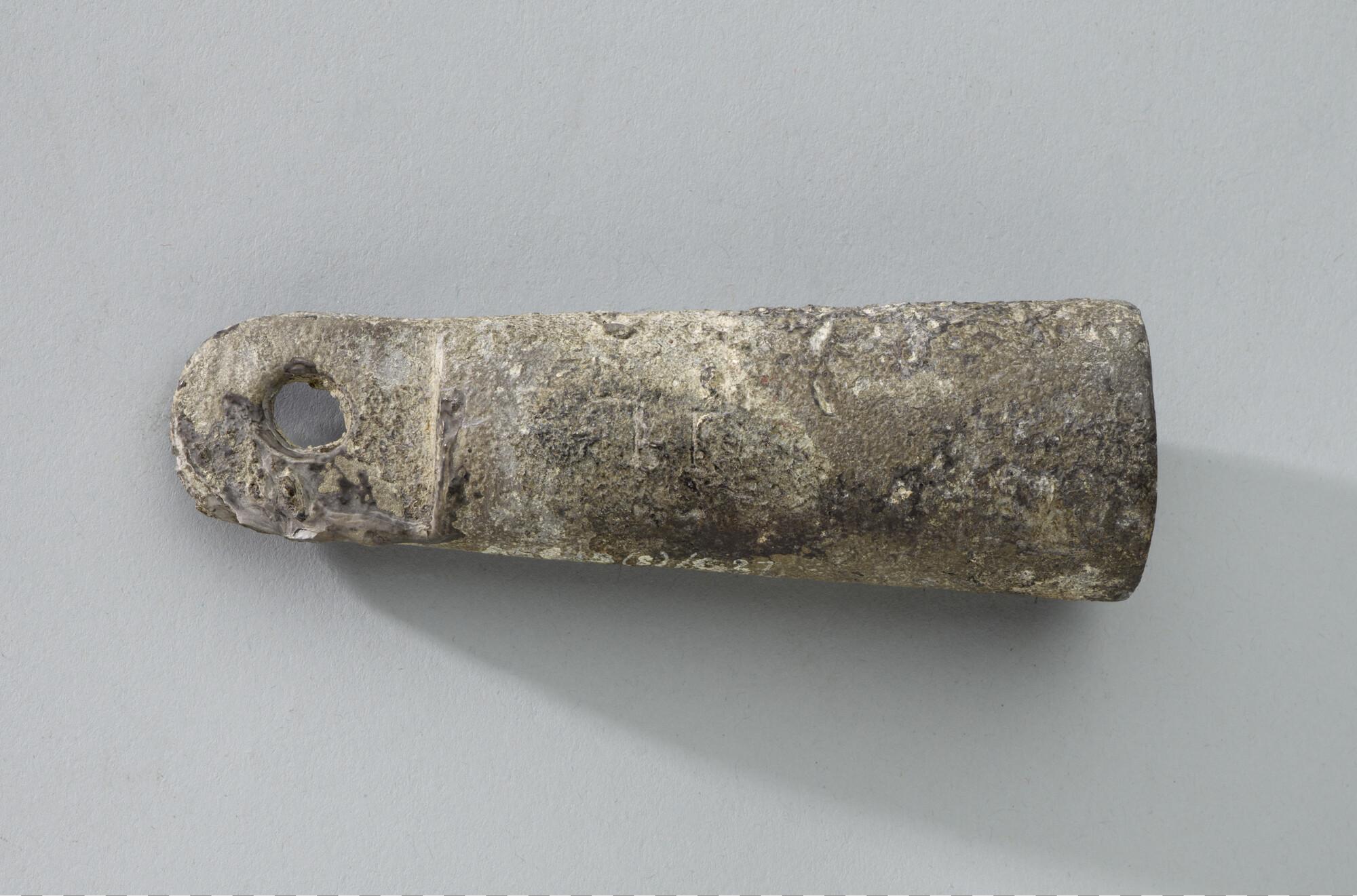 Klein (sloeps-)lood van 0.540 kg, met oog en ziel. Afkomstig uit het wrak van het VOC-schip 'Hollandia', in 1743 bij de Scilly Eilanden vergaan.