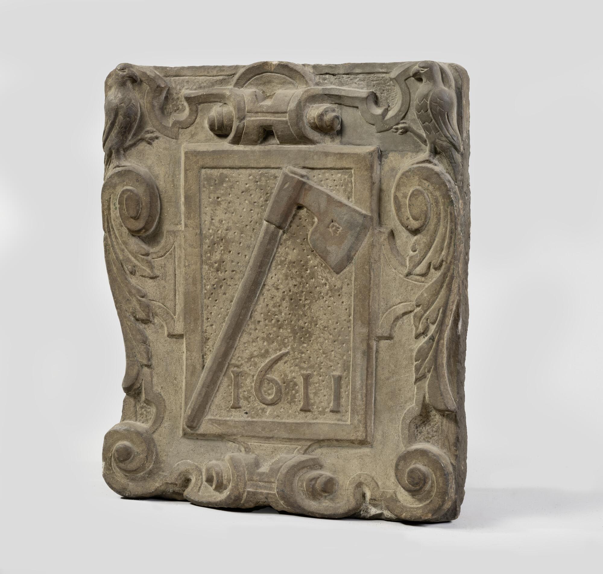 Gevelsteen met voorstelling van een scheepsbouwersbijl en jaartal 1611