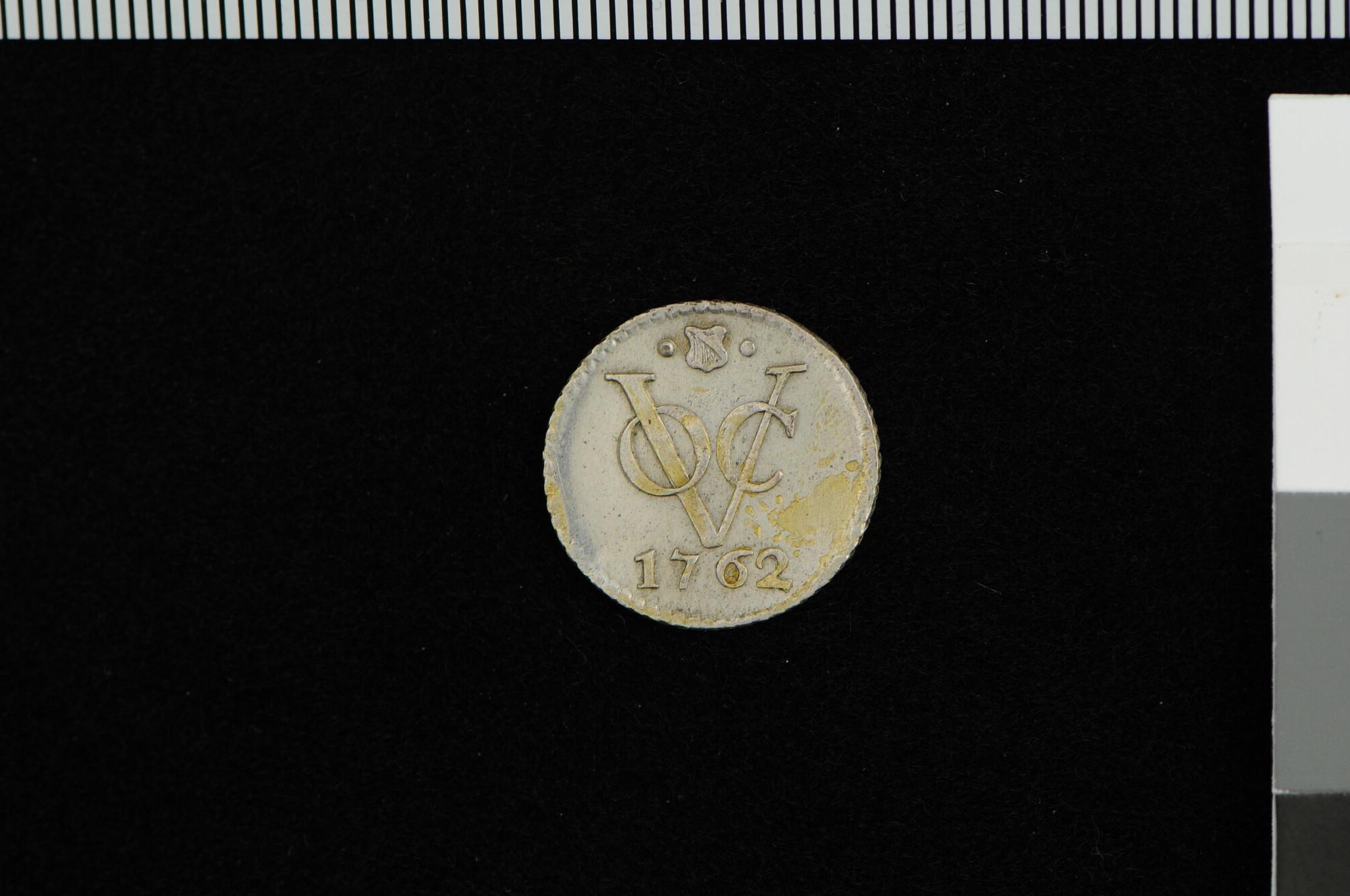 Zilveren afslag van een halve duit, geslagen in Holland voor de VOC