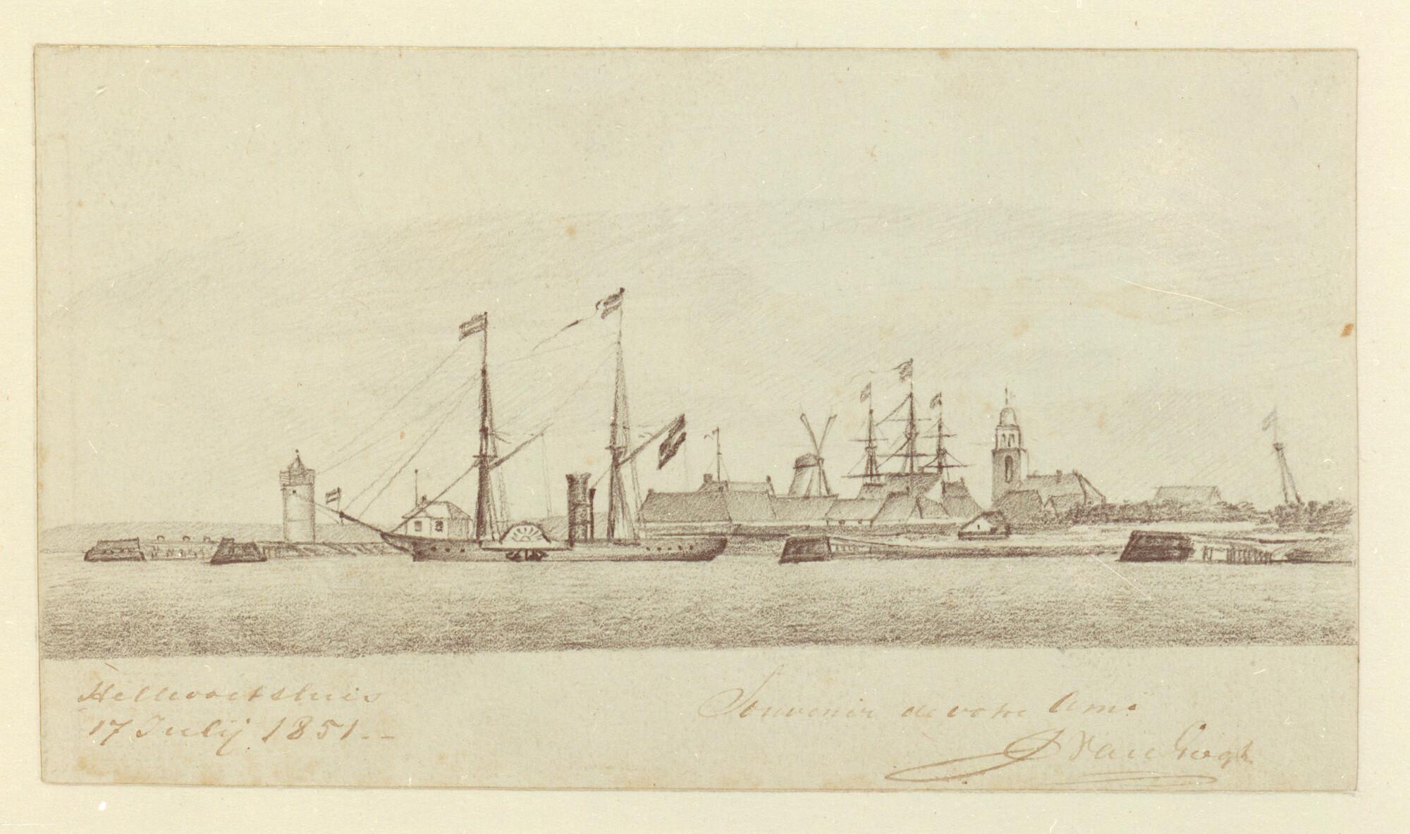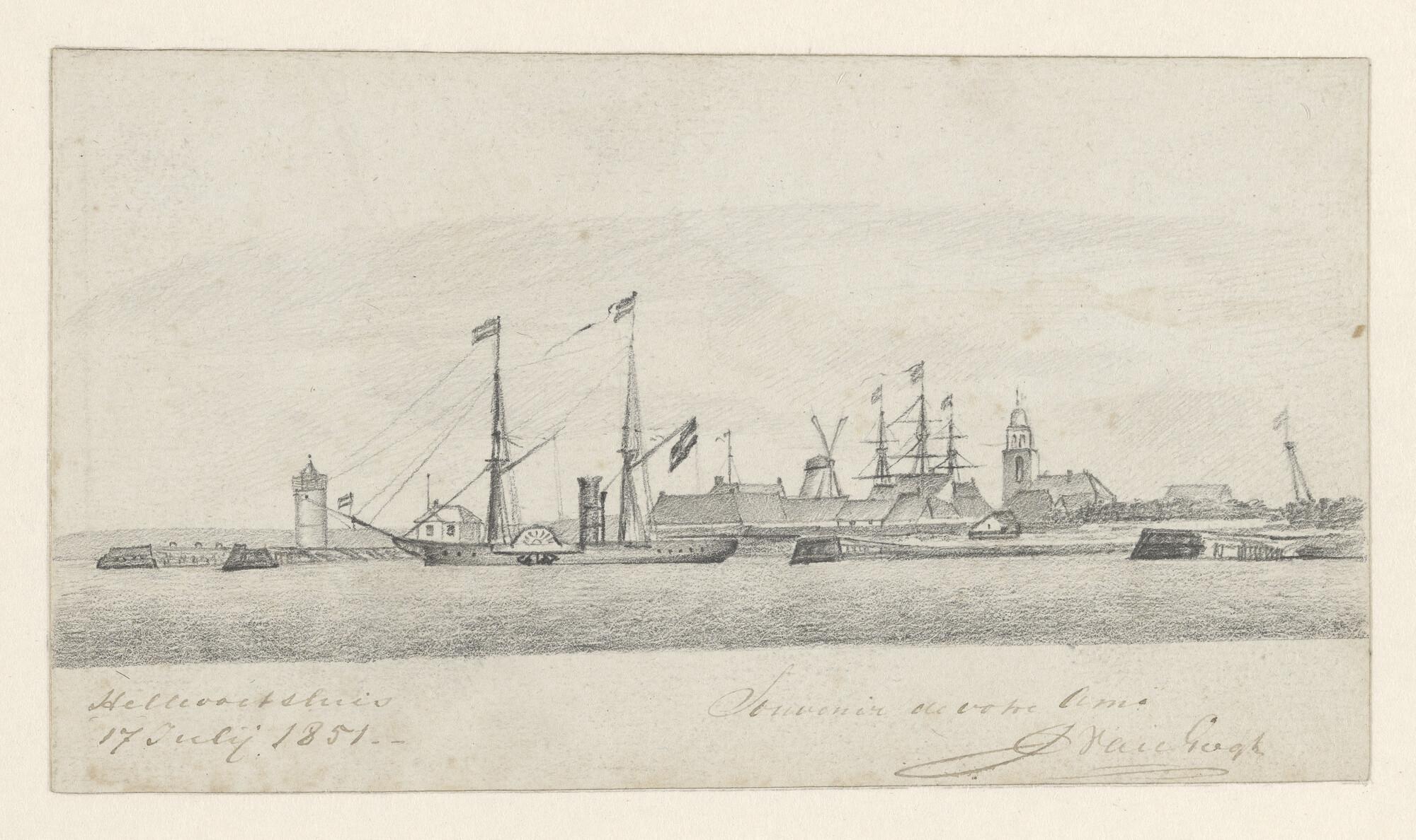 Een raderstoomschip op de rede van Hellevoetsluis, 1851