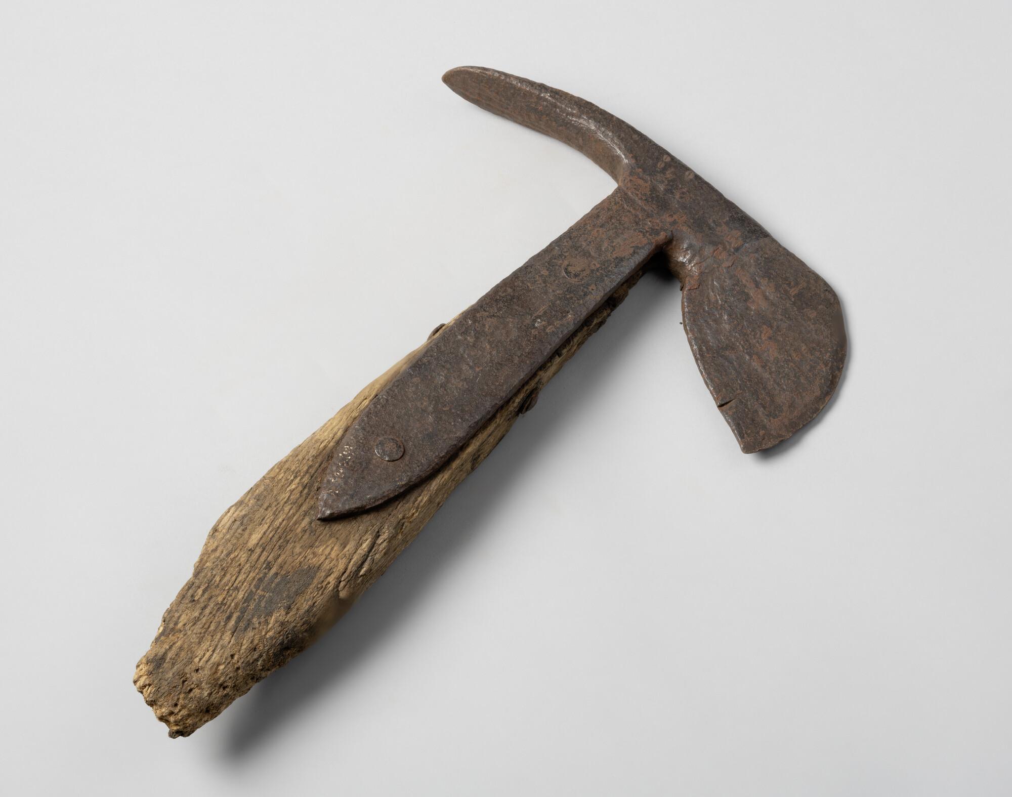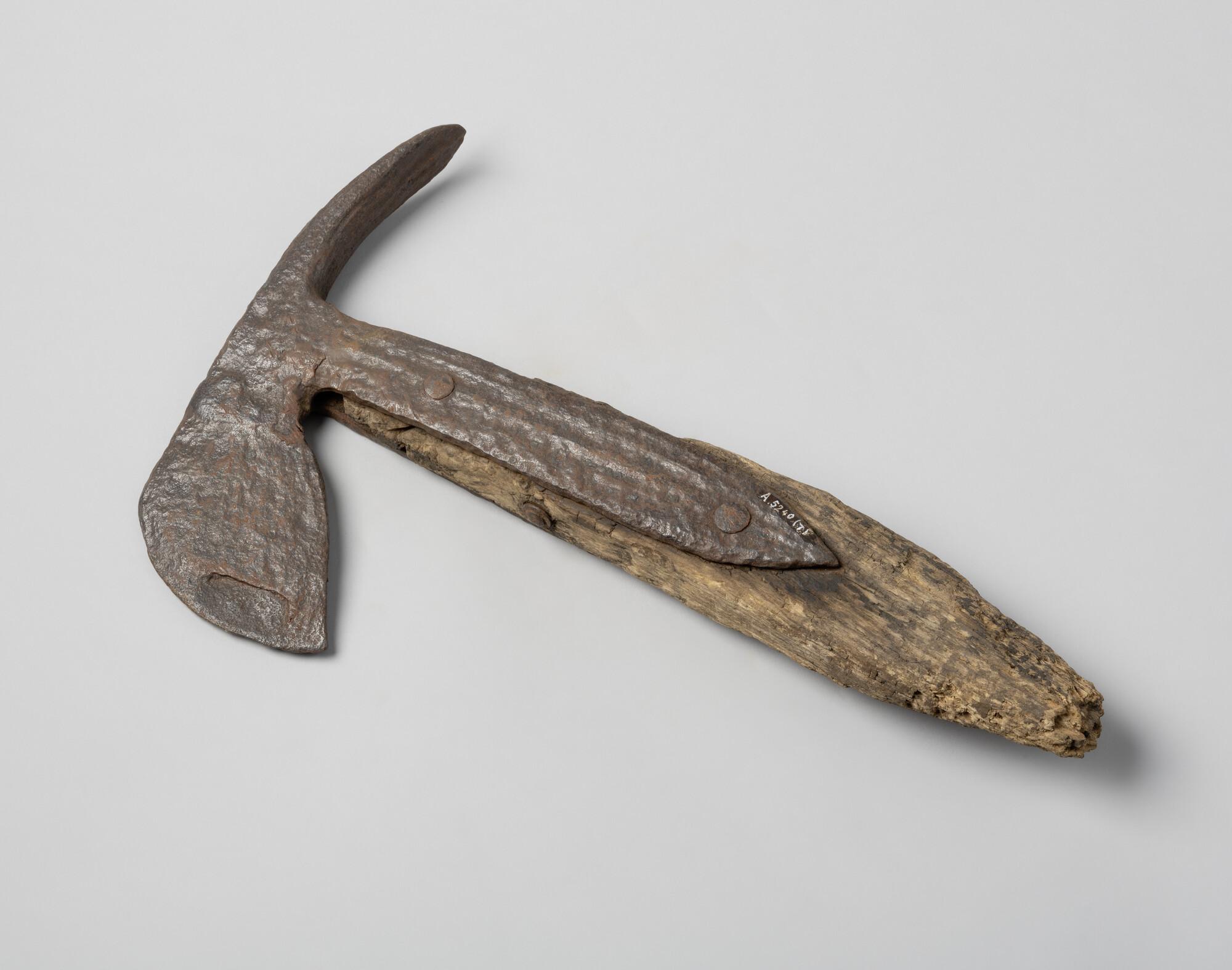 Hakbijl met essen steel-fragment. Geen merken