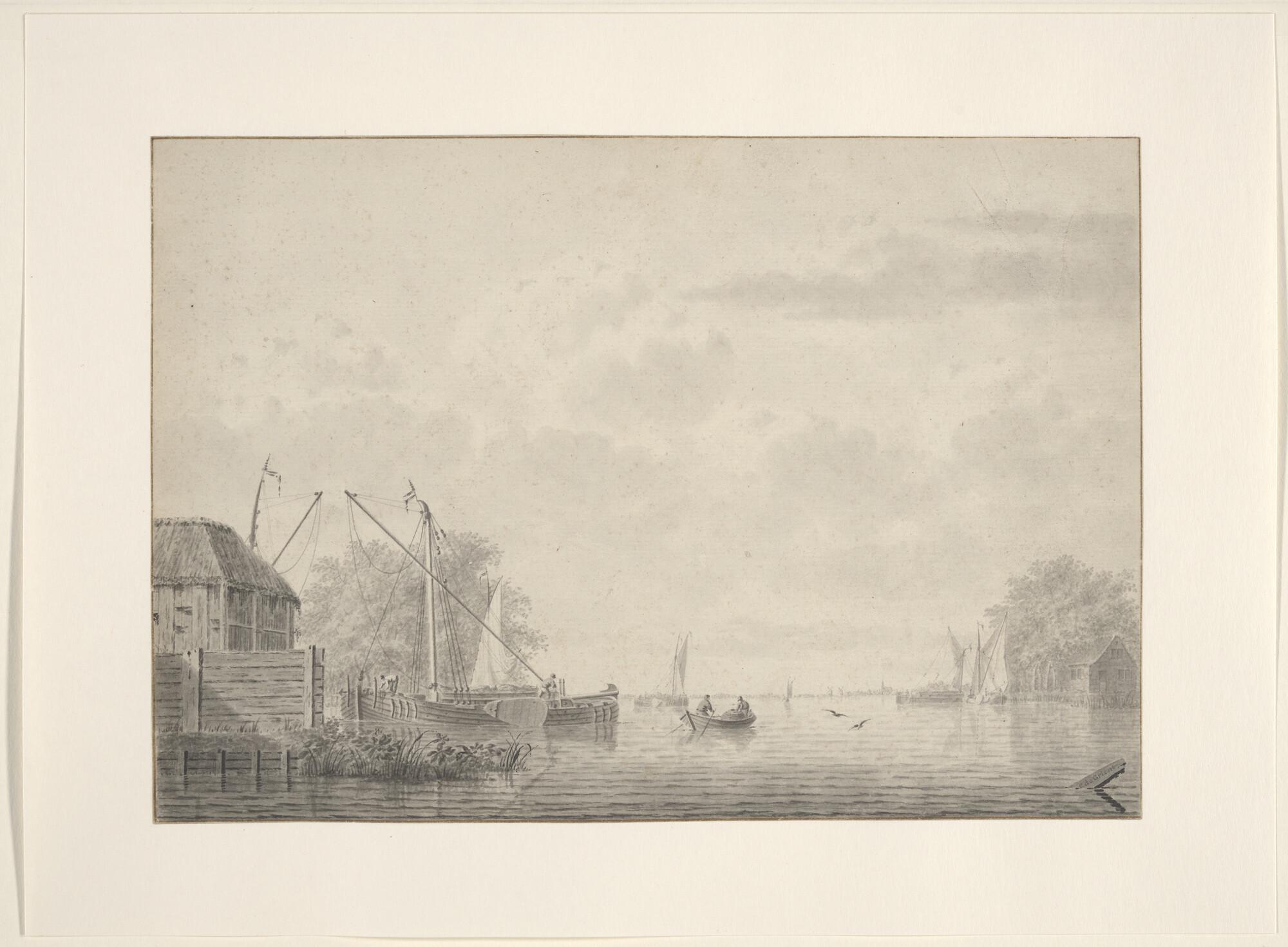 Zuidhollandse turfschepen (ijkers) op een binnenwater.