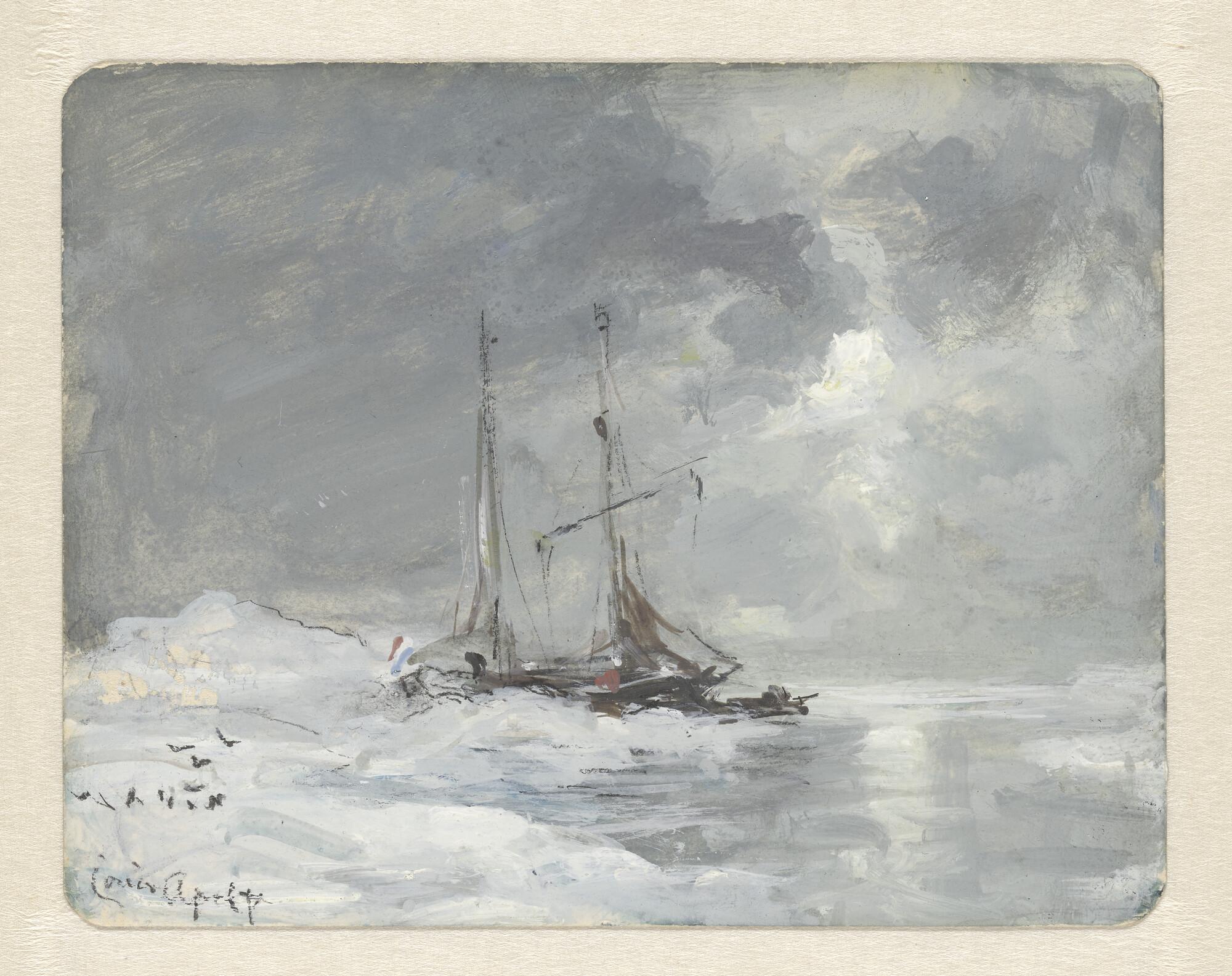 De poolschoener 'Willem Barents' in het ijs omstreeks 1880