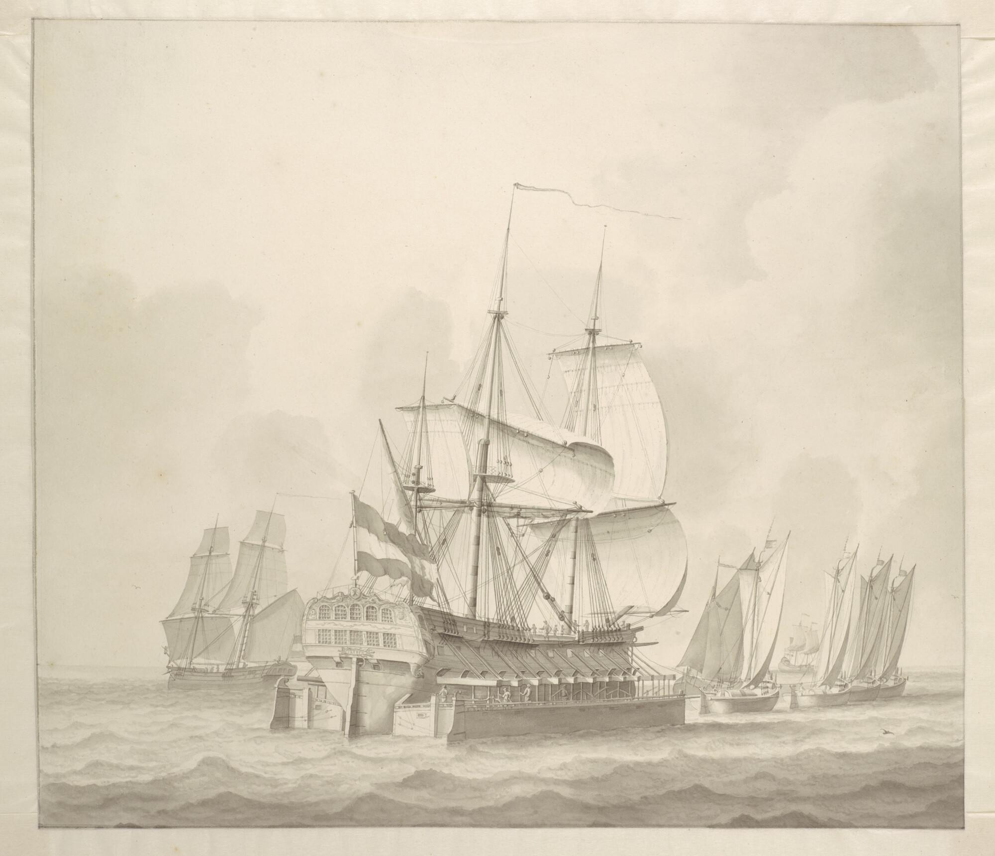 Het oorlogsschip 'Vrede' in scheepskamelen