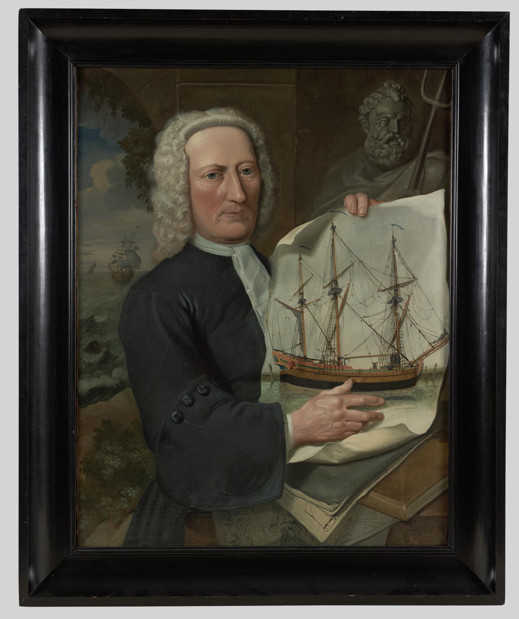 Schilderij in lijst van een portret van een reder of een zeekapitein.