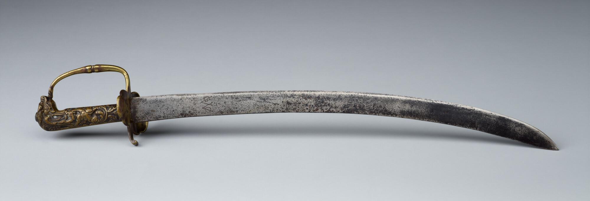 Houwer met merktekens van de West-Indische Compagnie, met messing gevest.
