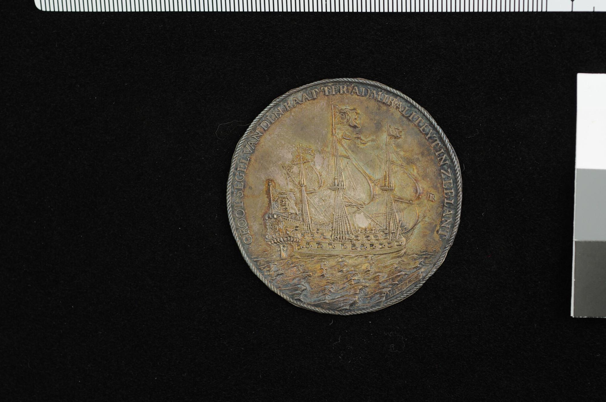 Afdruk in zilver van het grootzegel van de Admiraliteit van Zeeland.