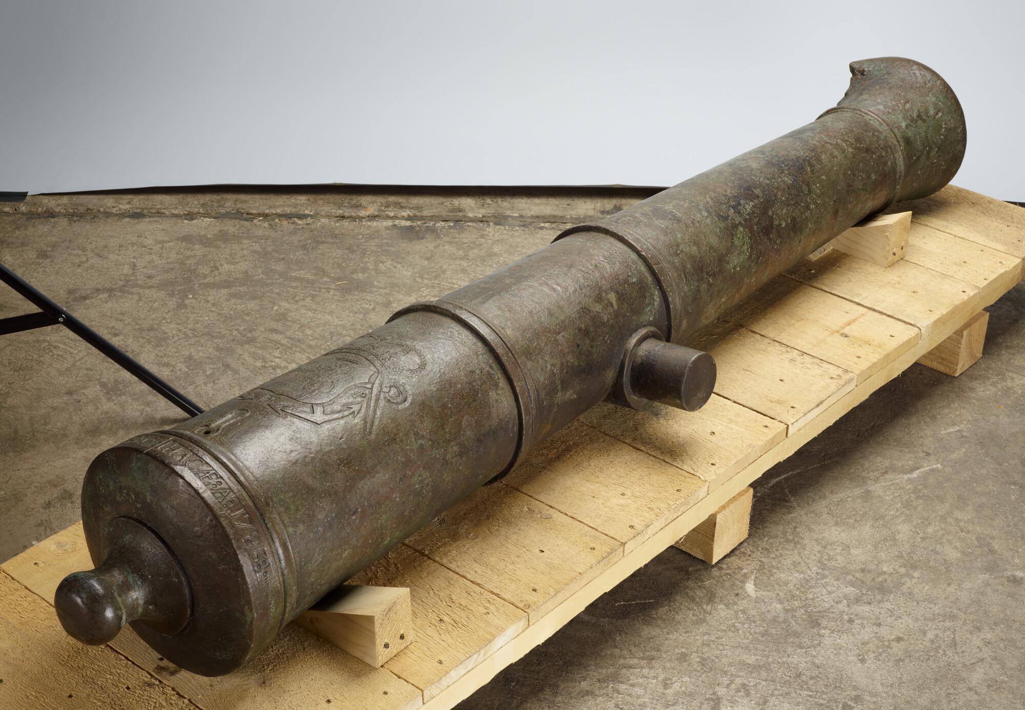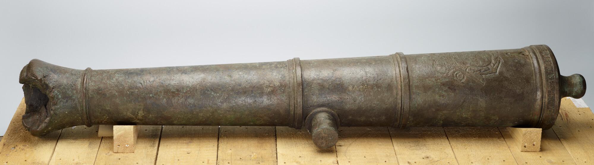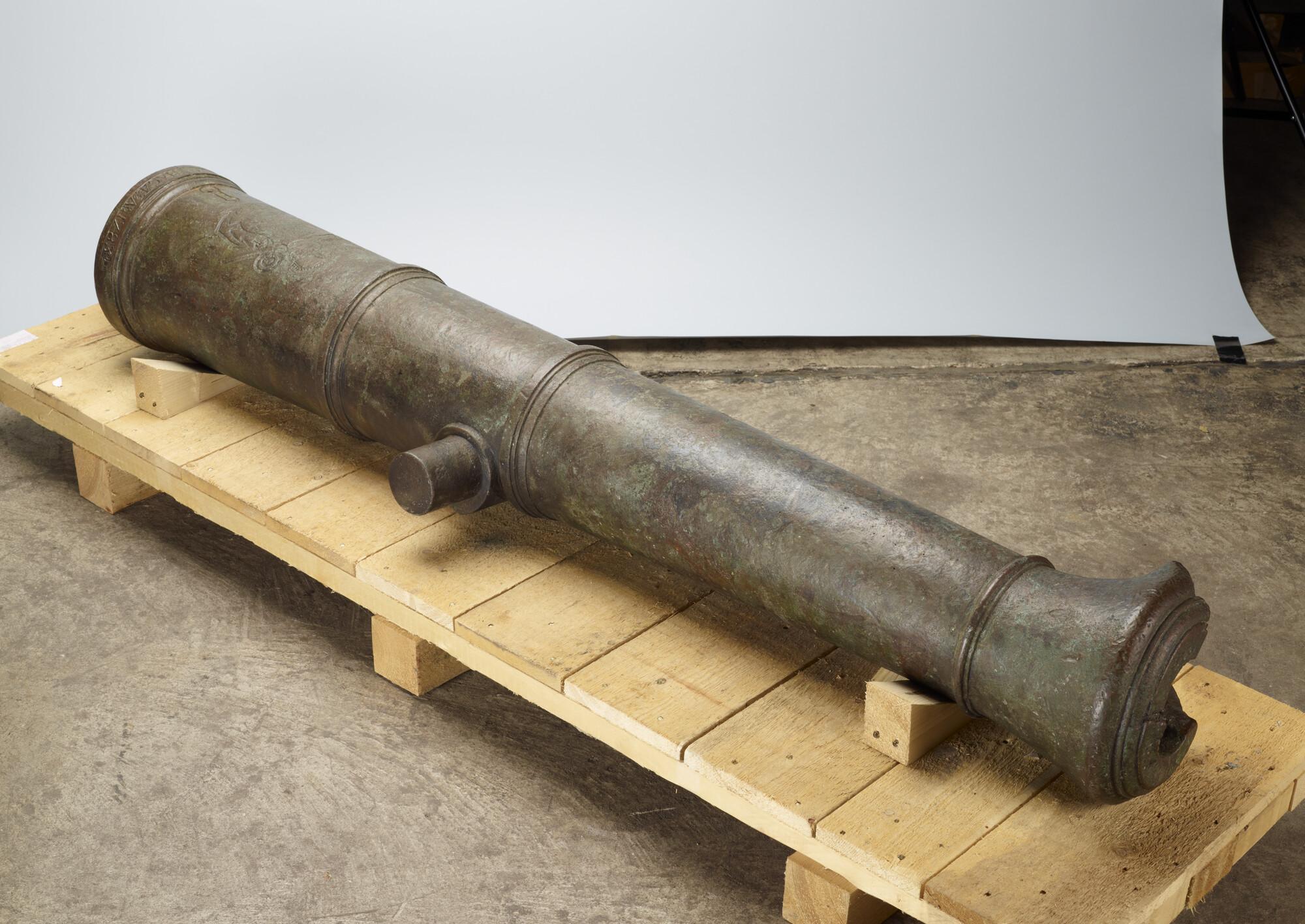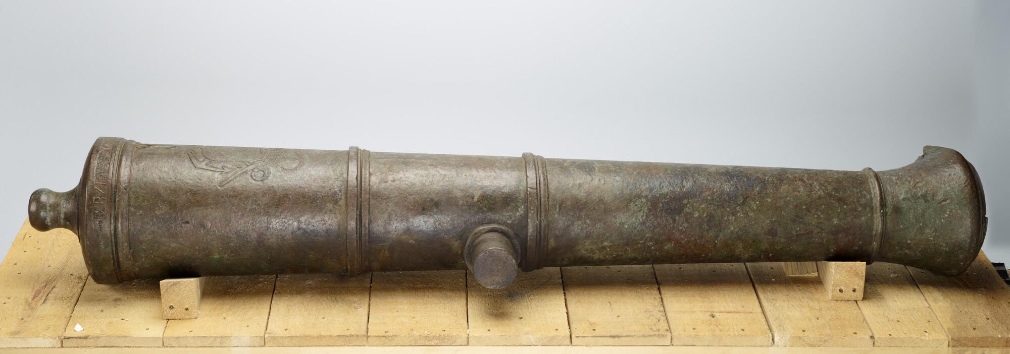 Kanon, geboord voor 8-ponds kogels, waarschijnlijk toebehoord hebbende aan de Admiraliteit van Amsterdam, afkomstig van het oorlogsschip Delft.