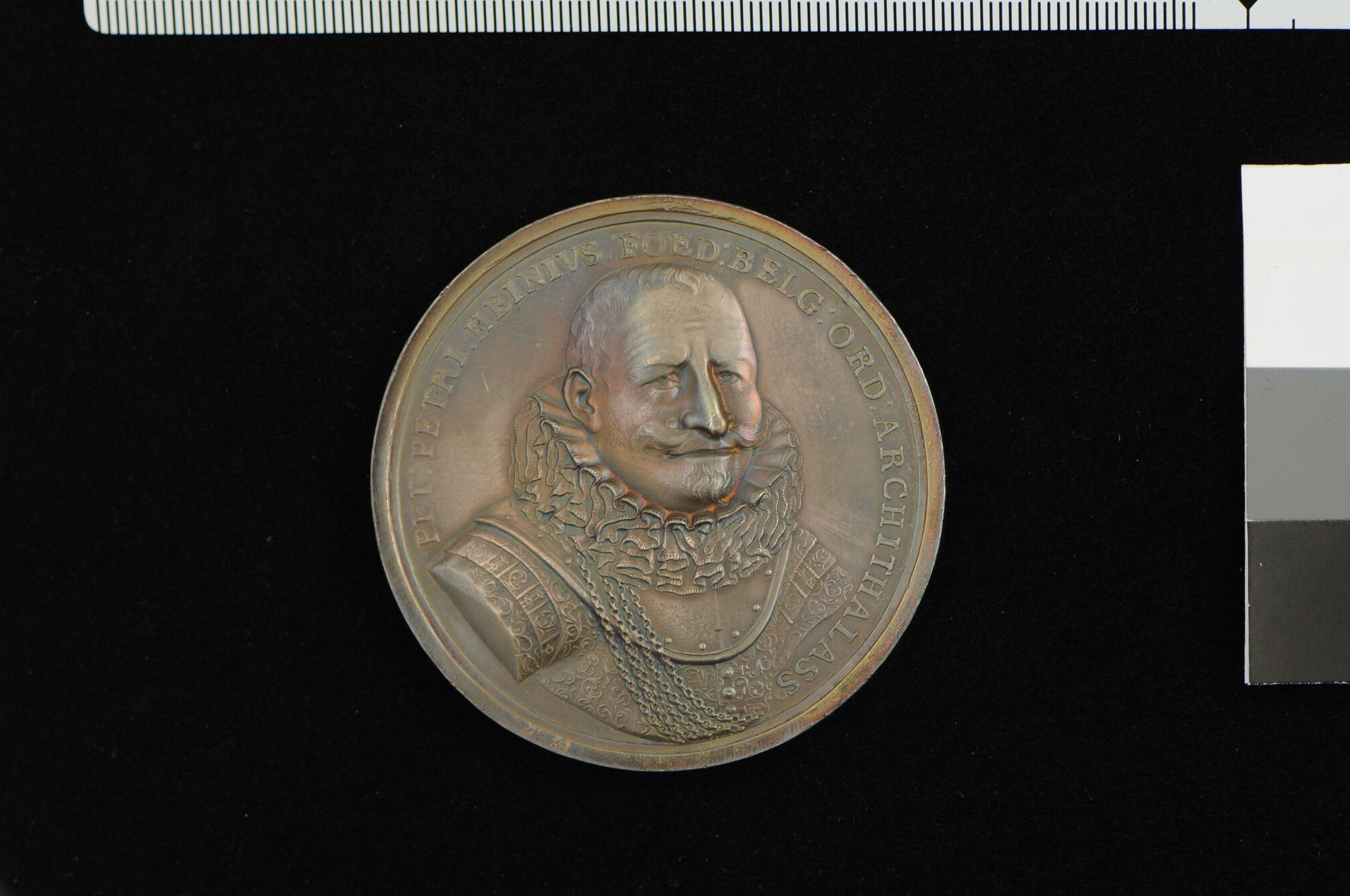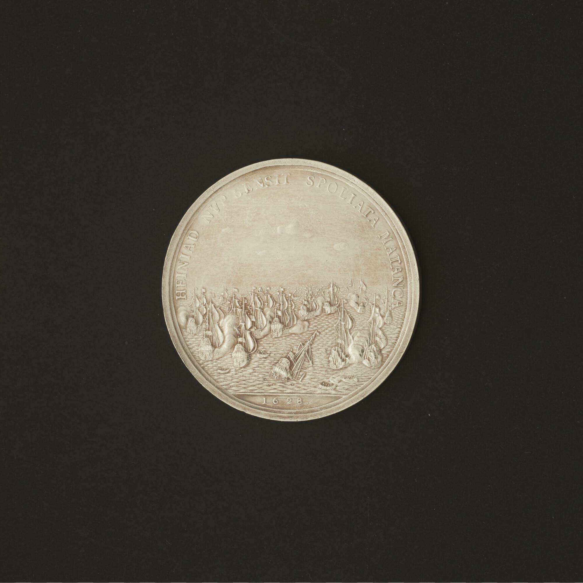 Zilveren penning geslagen ter herinnering aan de verovering van de zilvervloot door Piet Hein, 1628.