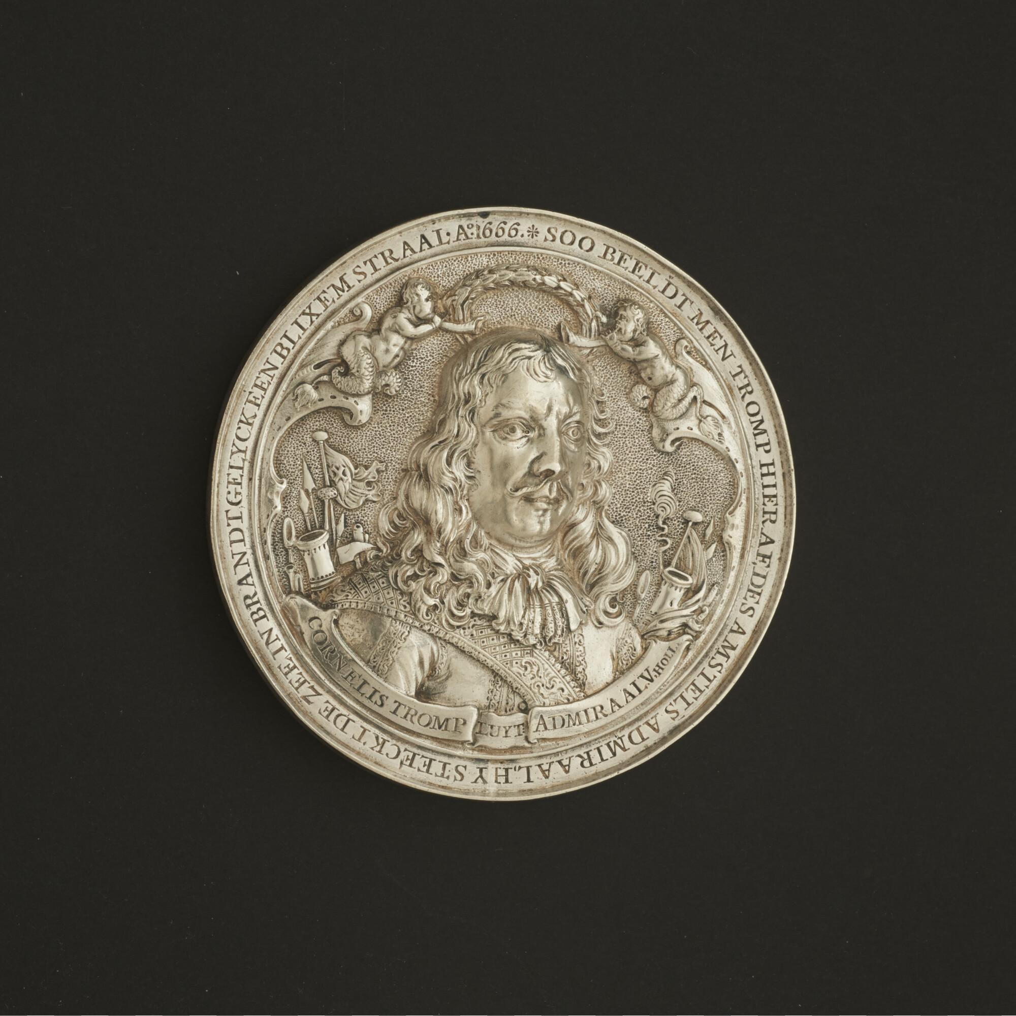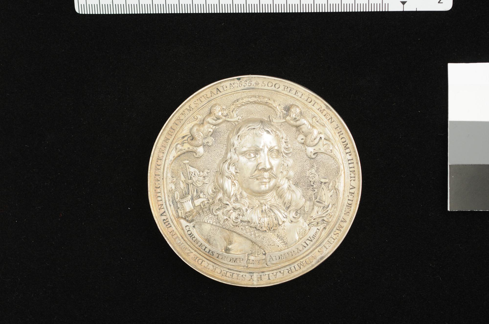 Zilveren penning op Cornelis Tromp, luitenant-admiraal van Holland, en zijn dappere optreden tijdens de Vierdaagse Zeeslag, 10-14 juni 1666.
