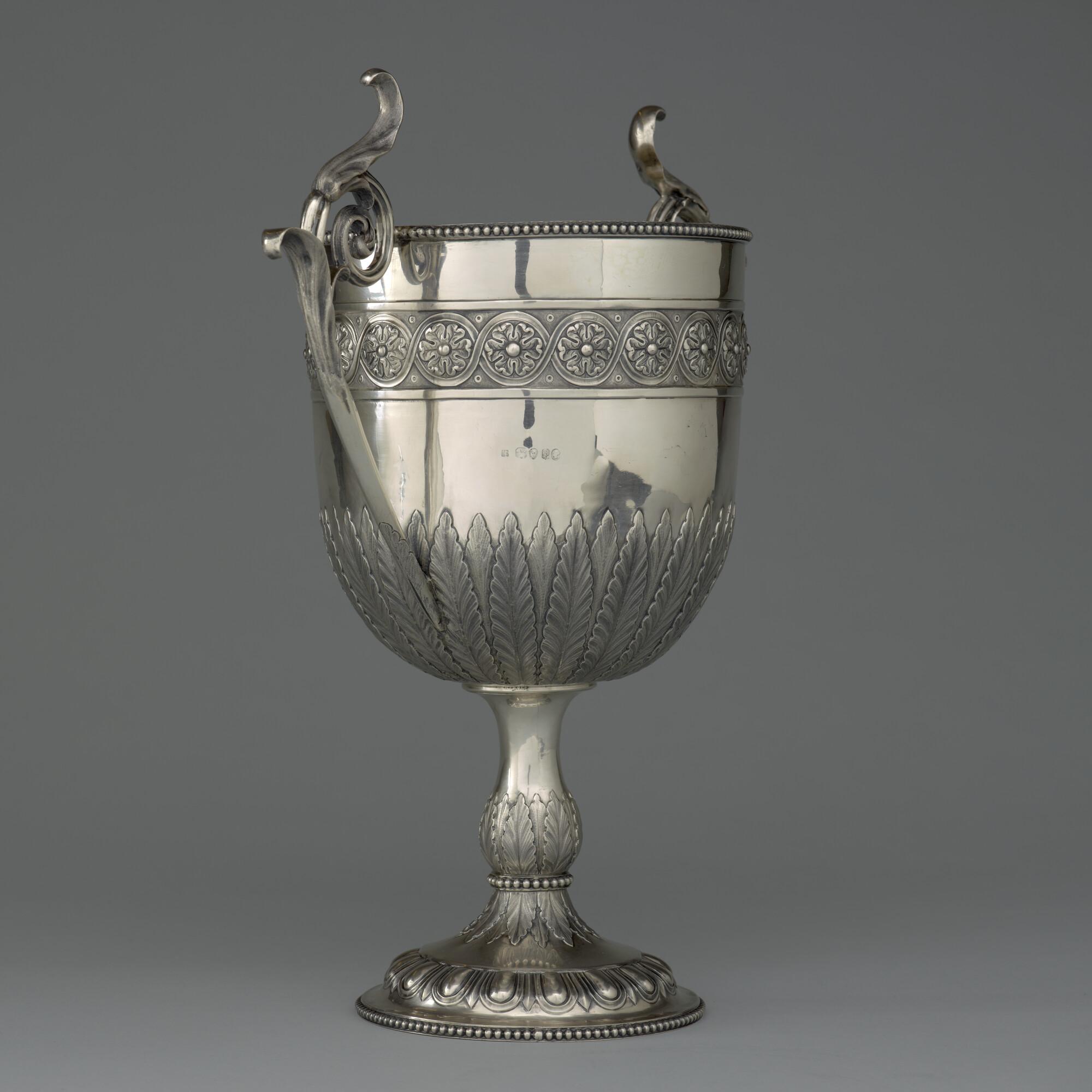 Zilveren bokaal op hoge voet met twee handgrepen. Geschonken aan de vereniging Willem Barents door Leigh Smith, toen deze na geleden schipbreuk op 3 augustus 1882 met zijn bemanning op de kust van Nova Zembla werd gered door de "Willem Barents".