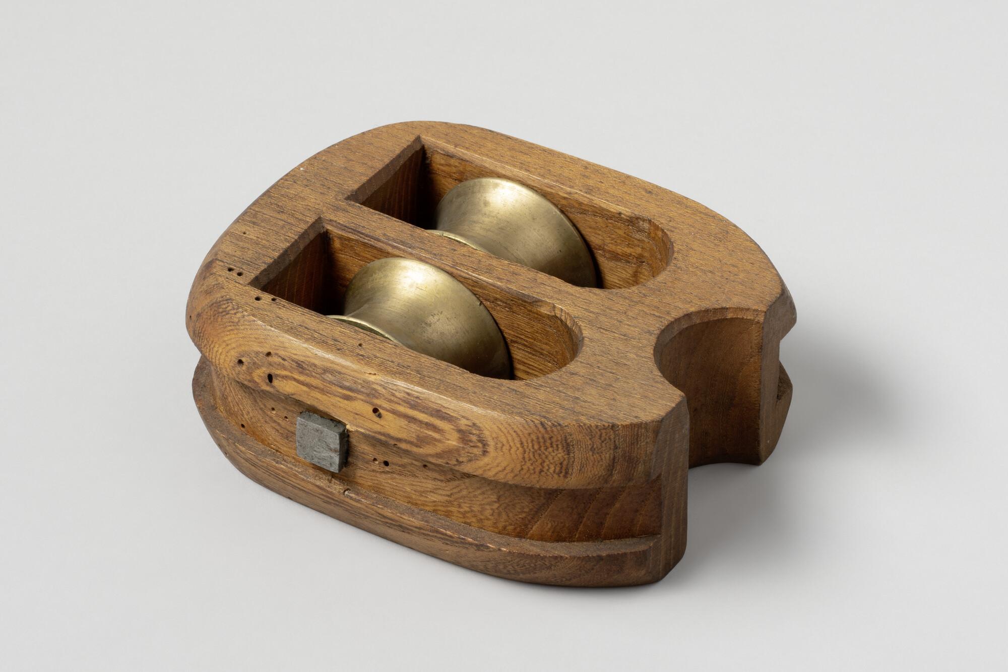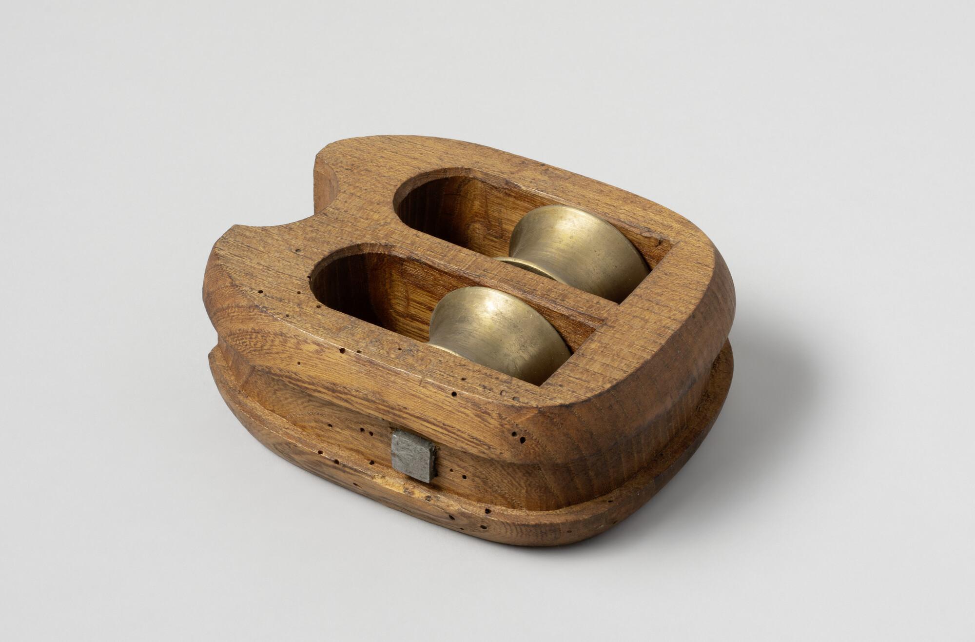 Wantlei, iepehout, met bronzen schijven en ijzeren nagel.