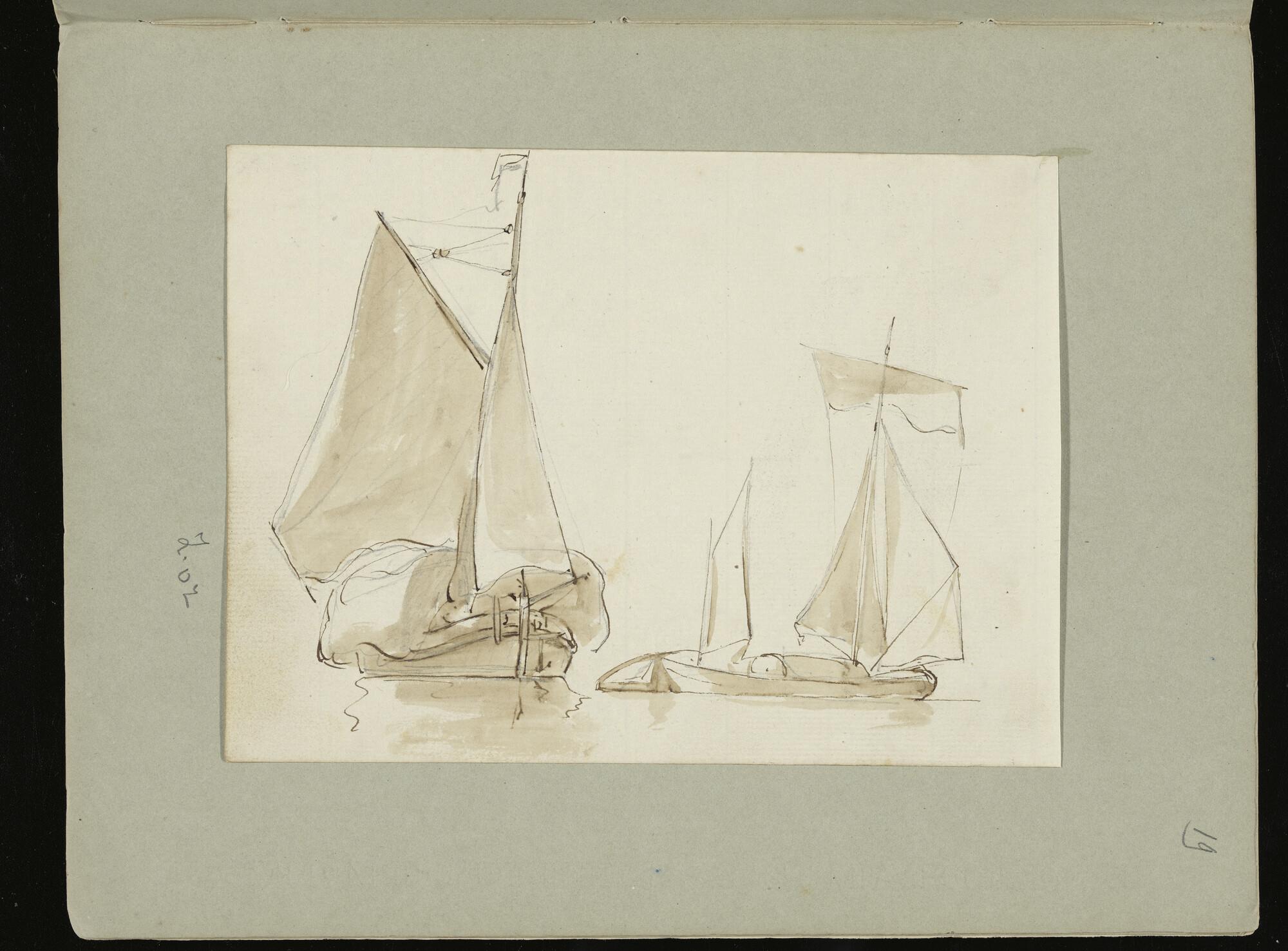 Een tjalk en een keen (verso: een tjalk.).