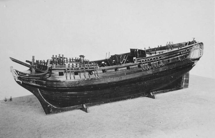 Rompmodel van een fregat van 24 stukken. Afkomstig van de werf Het Roopaard (fam. Duyts) te Amsterdam.