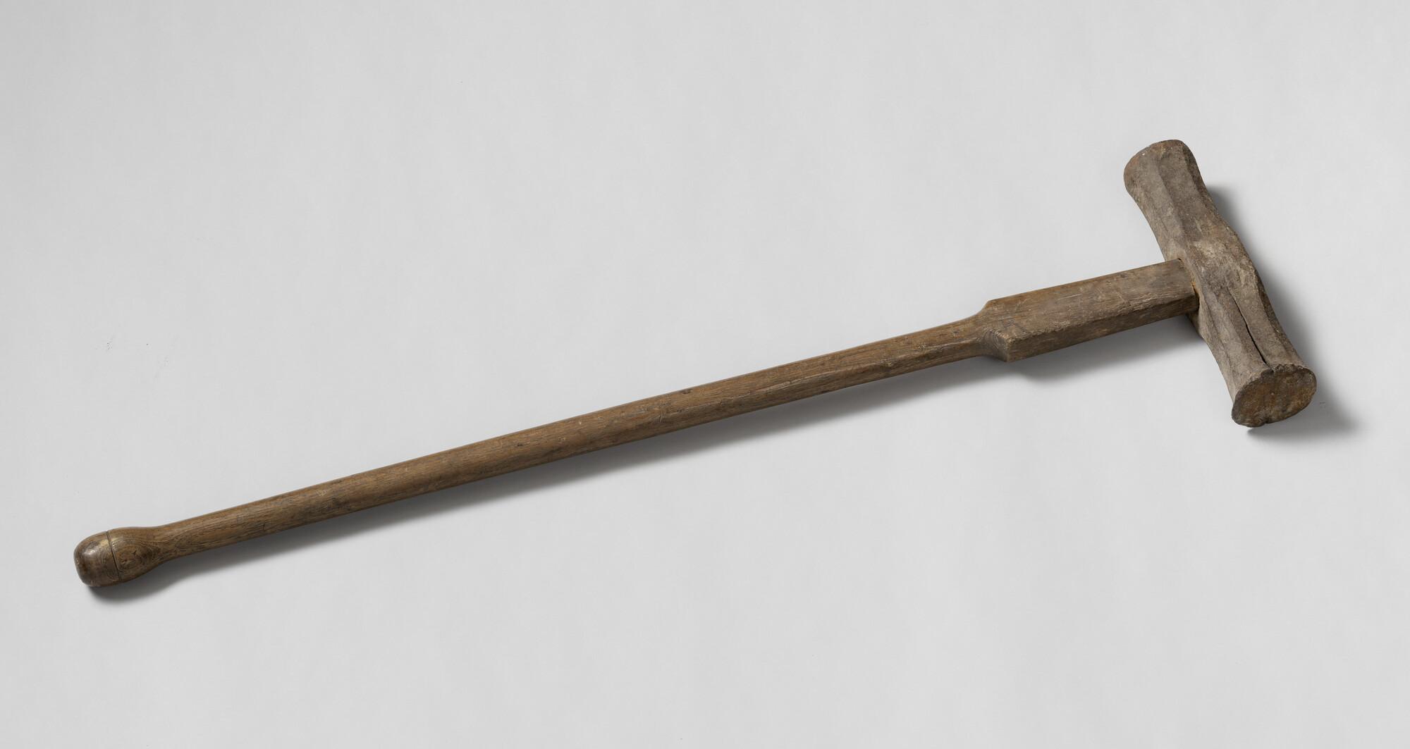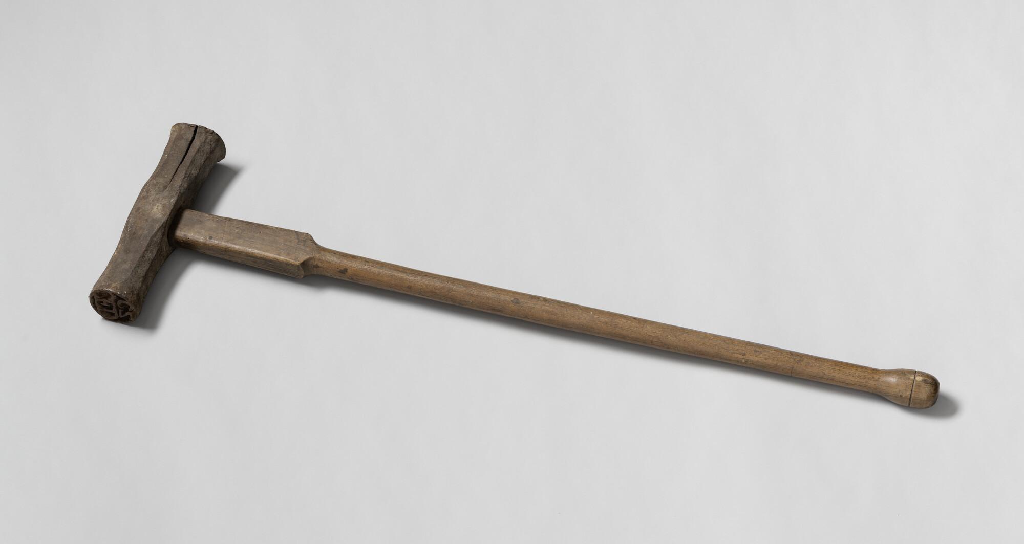 IJzeren moker voor het merken van hout. Vroeger gebruikt bij de scheepsmakers om de aangekochte balken en planken te merken [werd niet gloeiend gemaakt]. De moker is met de initialen van de firma Duyts.