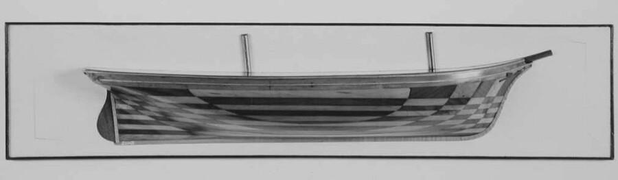 Halfmodel van een tweemast schip met ronde hek.