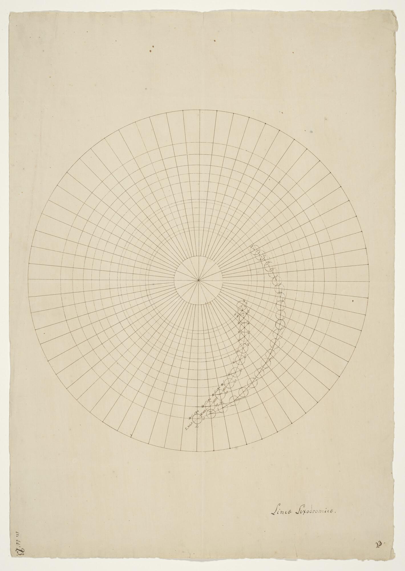 Kaartnet in handschrift (wellicht van J.F. van Beeck Calkoen, 1772 - 1811) met daarop ingetekend twee loxodromen.