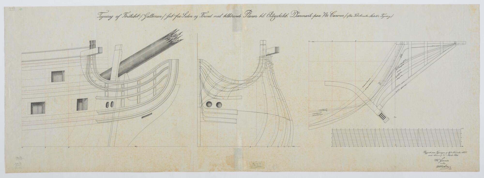 Detailtekening van het voorschip van een Deens oorlogsschip van 74 stukken